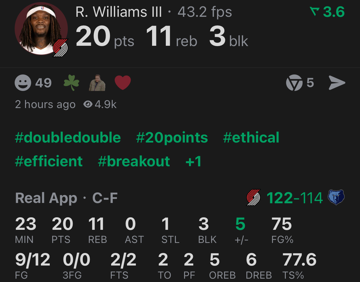 朱哥35分11助攻,得分赛季新高,8记三分平生涯最高。开拓者vs灰熊NBA
