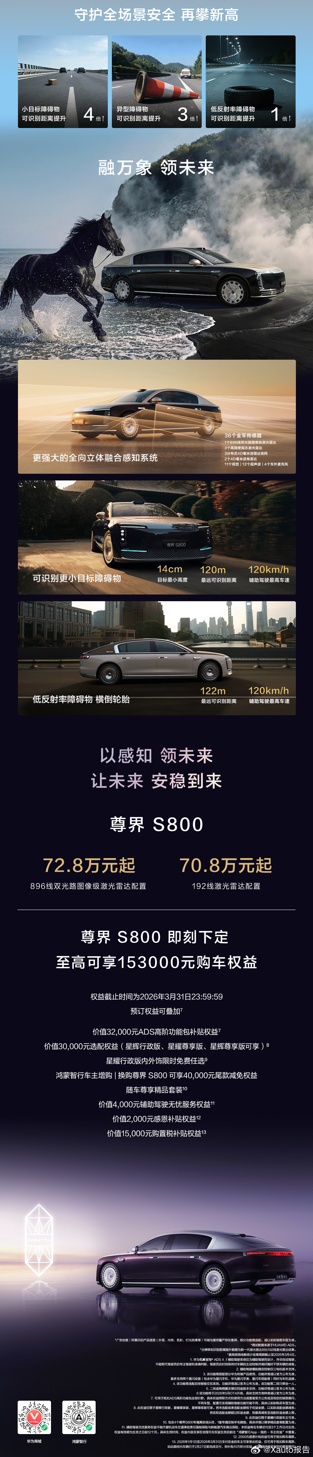 一图读懂尊界s800焕新技术发布!尊界首搭双光路图像级激光雷达华为乾崑896线激