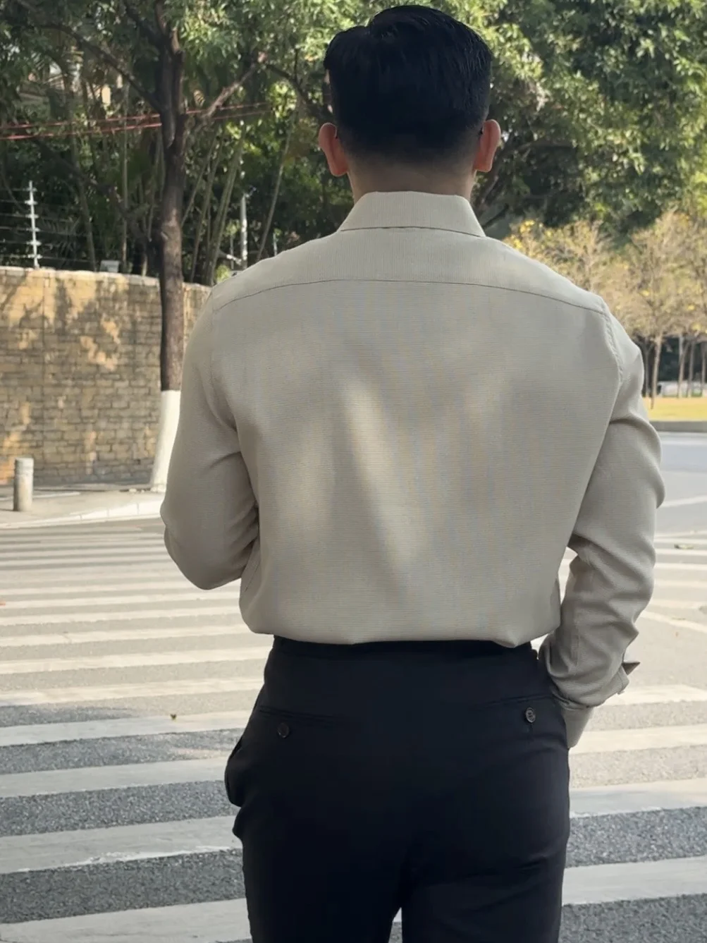面料带有细腻的纹理感,版型挺括有筋骨,不会软塌塌地贴在身上。无论是日常通勤,还是周末约会,它都能让男朋友在不经意间帅出新高度。