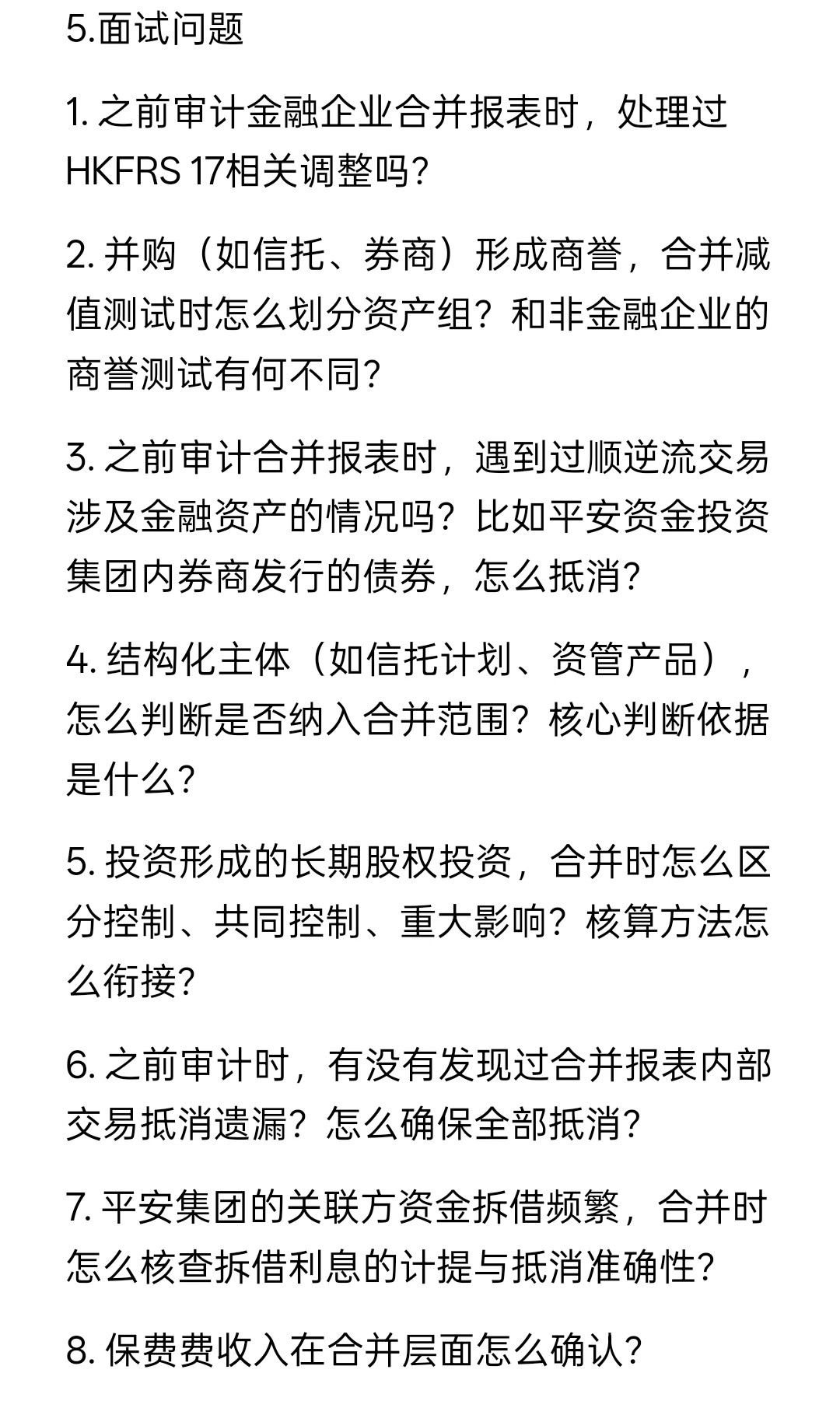 1. 之前审计金融企业合并报表时,处理过HKFRS 17相关调整吗?