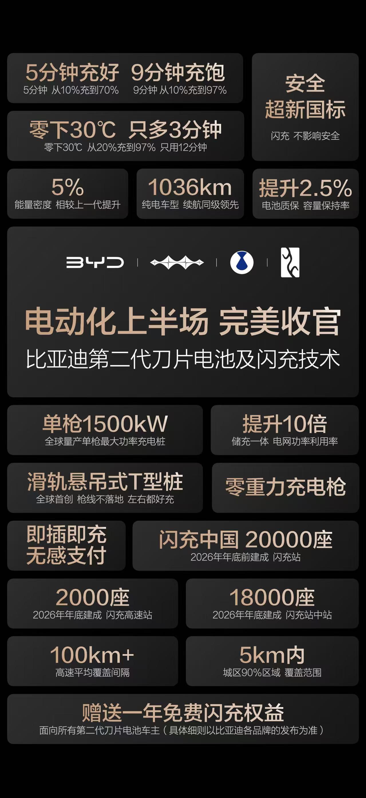 今晚比亚迪又又又给大家送惊喜了,宋Ultra EV开启预售15.5-18.5万元,并于3月底正式上市。全系搭载比亚迪第二代刀片电池及闪充技术,直接引领B级SUV进入闪充时代。 这个闪充技术确实很牛。5分钟能从10%充到70%;9分钟可以从10%充到97%,真实现了那句“充电和加油一样快”。担心冬季续航的也可以放心了,哪怕是零下30℃的北方,其充电时间也仅多花3分钟。实现最高710km纯电续航,长续航+闪充,出行无忧。 单这个闪充技术就足够惊喜了,而宋Ultra EV给大家远不止这些。宋Ultra EV可选装激光雷达,整车27个传感器。搭载天神之眼5.0,辅助驾驶能力堪比老司机 空间方面,凭借2840mm超长轴距,打造出越级的B级大五座车内空间,不仅同级领先,更超越了主流中大型豪华SUV。 另外,全系标配云辇-C智能阻尼车身控制系统,搭配前麦弗逊+后五连杆独立悬架。实现补能、辅助驾驶能力、空间、操控多维越级。 宋Ultra EV以颠覆性的闪充技术及710km超长续航、丰富配置与特色功能,带来强劲的产品竞争力,有望成为年度现象级“爆款”。