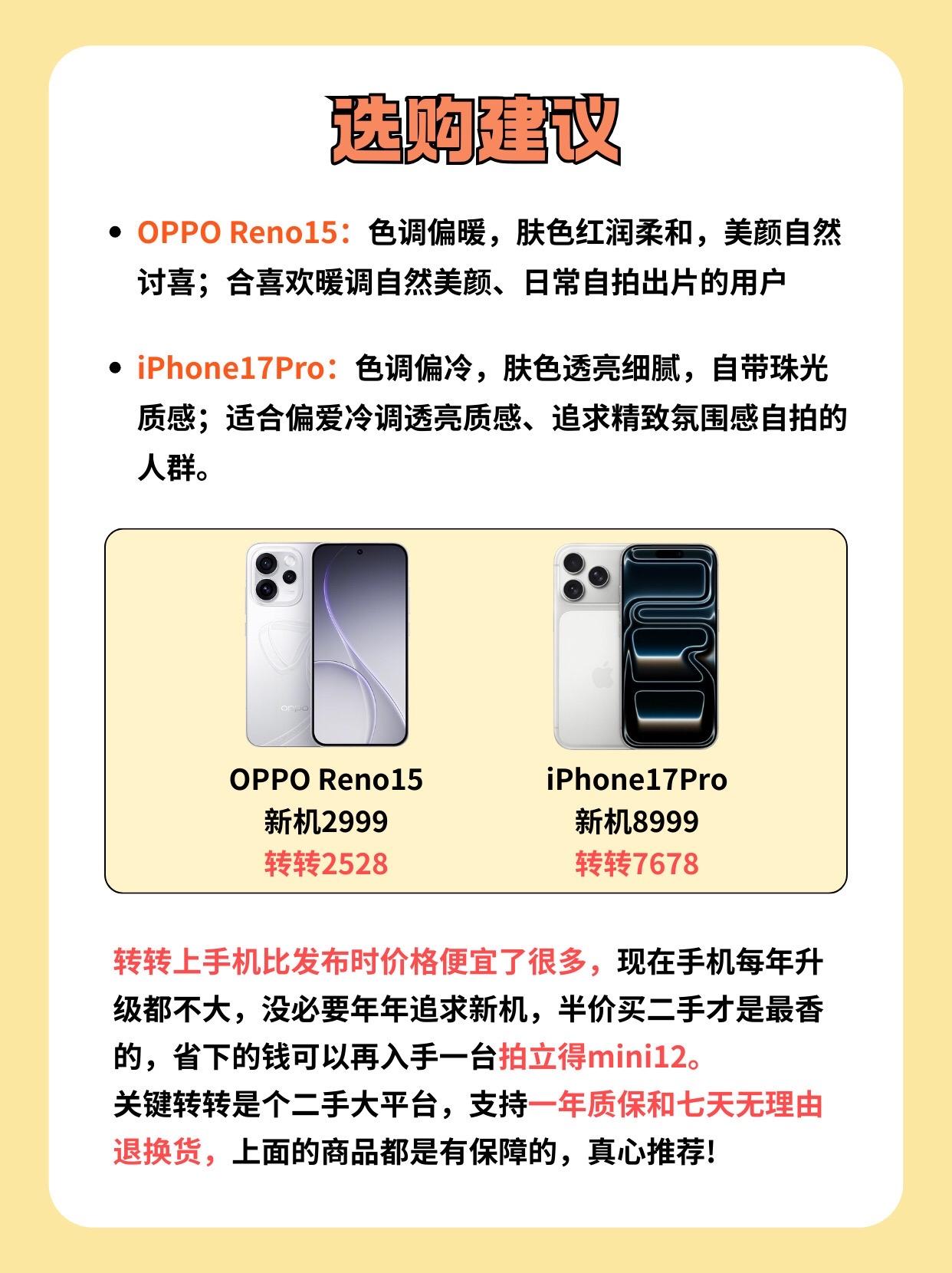 安卓和苹果拍照对比,谁更强?OPPO Reno15:色调偏暖,肤色红润柔和,美颜自然讨喜;合喜欢暖调自然美颜、日常自拍出片的用户