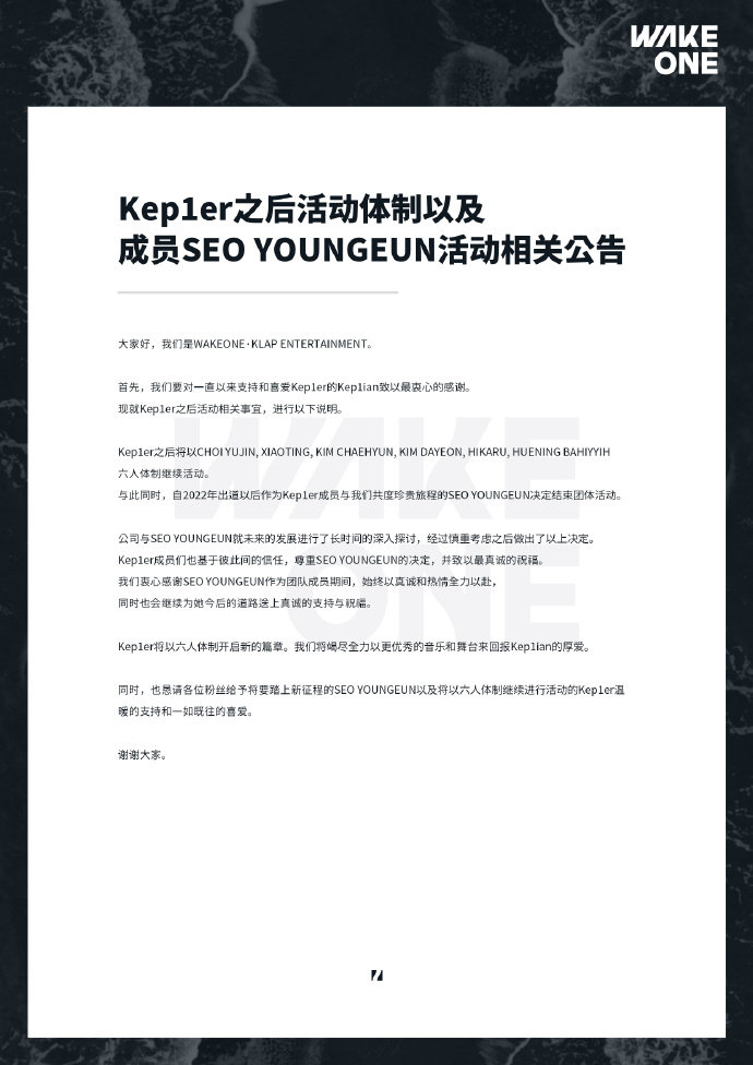 Kep1er徐永恩正式退团Kep1er官方宣布徐永恩退团Kep1er官方于2026年3月6日宣布,成员徐永恩正式退出组合,团队将调整为六人体制继续活动。妹妹们一定要注意身体呀!希望永恩早日康复,我们在舞台下等你~