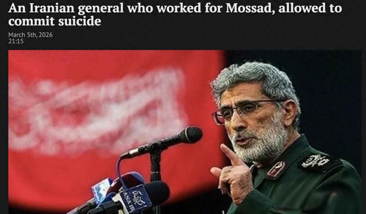 卡尼失踪一个月,三次空袭前都刚好离开,伊朗却不敢动他 2024年10月,以色列方面对真主党新任首领萨菲丁的藏身地点实施了轰炸,就在行动开始前的几个小时里,卡尼突然失去联系,人也不知去向,但没过几天,他又在德黑兰的一场公开葬礼上露面,脸上带着疲惫的神色,人却平安无事,当时大家只觉得他是侥幸逃过一劫。 2025年6月,圣城旅总部被导弹打中,监控拍到卡尼在爆炸前七分钟走出大楼上车离开,同一栋楼里另外三名高级指挥官当场死亡,这次卡尼没有露面,但伊朗官方发了一条简短声明,说卡尼安全。 2026年2月,哈梅内伊官邸被袭击,现场留下无人机残骸和弹坑,袭击发生前半小时,卡尼提前离开,理由是临时接到紧急会议通知,但事后查证那天没有安排会议,从这次事件之后,卡尼再也没有公开露面。 卡尼接替了苏莱曼尼的职位,苏莱曼尼曾负责整个“抵抗之弧”,从黎巴嫩到也门,情报、资金和人员都在他手中流转,现在如果卡尼真的有问题,那过去五年伊朗在中东建立的网络可能早就被人看穿,不是泄露了一部分,而是整个网络都变得透明。 过去他总能在第一时间澄清谣言,2024年有人说他在审讯室中去世,一周后他就出现在镜头前,2025年又传出他被处决的消息,结果三天内就有人在街头拍到他,但这一次已经整整一个月,没有任何视频、照片或者声音出现,连革命卫队的官方网站也没有提到他的名字,这种长时间的沉默很不寻常,不像是暂时躲起来,更像是整个人被彻底“冻结”了。 有意思的是,以色列那边反而出来澄清说卡尼不是他们的人,按理说如果真是间谍,他们应该趁机抹黑才对,但他们不骂还否认,这个动作有点怪,我琢磨着也许他们故意护着他,让伊朗内部最怀疑他的人不敢轻举妄动,怕一动手就暴露自己也在猜疑,或者干脆把他推成潜在殉道者,逼他在体制里越来越孤立。 从技术角度来说,这更加说不通,他总是能提前撤离,可他的同僚却接连遭遇定点清除,圣城旅的副手、真主党的联络官、还有哈梅内伊的贴身保镖都未能幸免,如果说情报系统只保护他一个人,那就不太像专业情报人员的作风,反倒像是有人专门给他开了个单人逃生通道。 在伊朗革命卫队,保护领袖是必须遵守的规则,知情不报的人会被直接处决,清白的人应该主动站出来申辩,卡尼既没有报告情况,也没有为自己辩解,他现在处境尴尬,上级不承认他,下属不敢信任他,连他自己似乎也放弃了争取。 有人觉得伊朗高层在采用冷处理的方式,不处决他,也不释放他,更不发表任何言论,就让他慢慢困在怀疑之中,这种手段比直接砍头还要狠毒,让你活着,却让所有人都当你不存在。