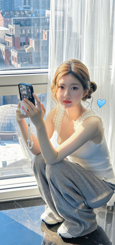 关晓彤壁纸~白裙配黑长直,在城市背景下超级美!