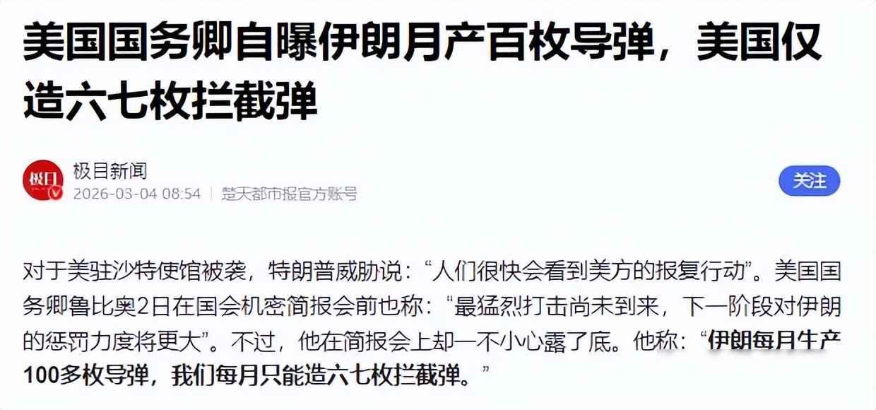 航母缩回千里外,小国导弹逼退大舰队,战术变了但战争没停 从3月3号起,伊朗革命卫队发起名为“真实承诺4”的行动,动用无人机和弹道导弹对美军“林肯”号航母编队实施连续打击,一直持续到3月7日,这轮攻击已经持续了八天时间,美军方面没有公开具体损失情况,也没有像以往那样宣称局势正常。 今年二月上旬,美军潜艇击沉了伊朗的德纳号护卫舰,船上八十七人全部遇难,伊朗认为这种行为越过了底线,直接将其视为战争的开始,这次行动不是偶然发生的,而是有明确原因的报复行为,伊朗方面没有打算占领任何地方,目标就是针对航母,意思是如果对方敢攻击伊朗的舰船,伊朗就让对方的旗舰无法靠岸。 3月7日凌晨,伊朗宣布第一次实战使用霍拉姆沙赫尔-4导弹,这是一种超重型岸舰弹道导弹,射程很远、威力很大,专门用来打击海上移动目标,虽然没有卫星图像能够证明它确实击中了林肯号,但美军舰队当天就向后撤退了1000多公里,直接进入印度洋深处,指挥系统发出最高级别警报,五角大楼保持沉默,连平时经常发布消息的海军也变得异常安静。 伊朗用大量廉价无人机展开消耗战,每架成本几万美元,这些无人机飞向目标区域干扰雷达系统并制造虚假信号,使得美军宙斯盾防御系统应接不暇,防空导弹每次拦截都要发射几十枚,每枚造价高达百万美元以上,而伊朗的导弹单价不到十万美元,月产量达到上百枚,这样算下来,拦截十枚导弹,他们就发射二十枚,最终先耗尽资源的必然是对方。 更麻烦的是,这种导弹能够改变飞行轨道,还能进行俯冲动作,到最后阶段可以依靠无人机传递数据来实时修正路线,以前的点防御系统或许还能碰碰运气,现在连最后一道防线都容易被绕过,不是技术能力不够,而是作战方式发生了变化,重点已经不再是能不能打中目标,而是敢不敢停留在原地。 美军这次后退,是几十年来头一次因为常规武器被迫调整战略部署,白宫没有举行记者会,五角大楼也没有发布声明,只有几个士兵在私下里提到他们被要求离开威胁区域,这种沉默本身就是一个信号,以前航母到哪里,哪里就是安全区,现在只要对方有几枚导弹加上一群无人机,就得考虑是否撤退。 欧洲国家的反应很实际,法国、德国和西班牙直接表明不参与冲突,只提供物资支持并在边境修建防护设施,担心战火蔓延到本国,联合国指出中东难民人数已超过2500万且持续增加,这边空中战斗不断,那边民众大规模逃离,问题早就超出两国范围了。 以色列方面也在采取行动,同时轰炸了伊朗的地下设施,美国则默许地区武装力量施加压力,但地面部队没有大规模出动,整个冲突停留在空中、电子战和舆论战的来回拉扯中,双方都没有取胜,却谁也不敢松手。 伊朗的生产能力确实提高了,他们在2026年2月就展示了霍拉姆沙赫尔-4导弹的量产线,这不是实验室里的样品,而是能稳定供货的流水线,美国拦截系统需要全球供应链支持,补给速度慢,伊朗自己制造导弹,速度快,成本低,还不怕供应中断,虽然技术上还有差距,但靠着数量和节奏,他们已经能够牵制对手。 宣传方式很有意思,央视连续两天播放伊朗无人机击中航母的画面,西方媒体没有跟进报道,也没有出来辟谣,不证明是假的,不代表事情没发生,舰队后撤这个动作,就是最硬的证据,伊朗这次把实战、影像、传播和心理影响串成一条线,比过去光喊口号强多了。 有人觉得这是小摩擦,但我觉得不是这样,特朗普政府本来以为几星期就能结束,现在专家估计可能要拖到一百多天,国内反对战争的声音渐渐多了起来,国会里也有人开始问,这样一直赌下去到底值不值得。 这场仗没有震天的爆炸声,但航母自己退后了一千公里,有时候真正的改变不是轰隆巨响,而是对方悄悄把船开远了。