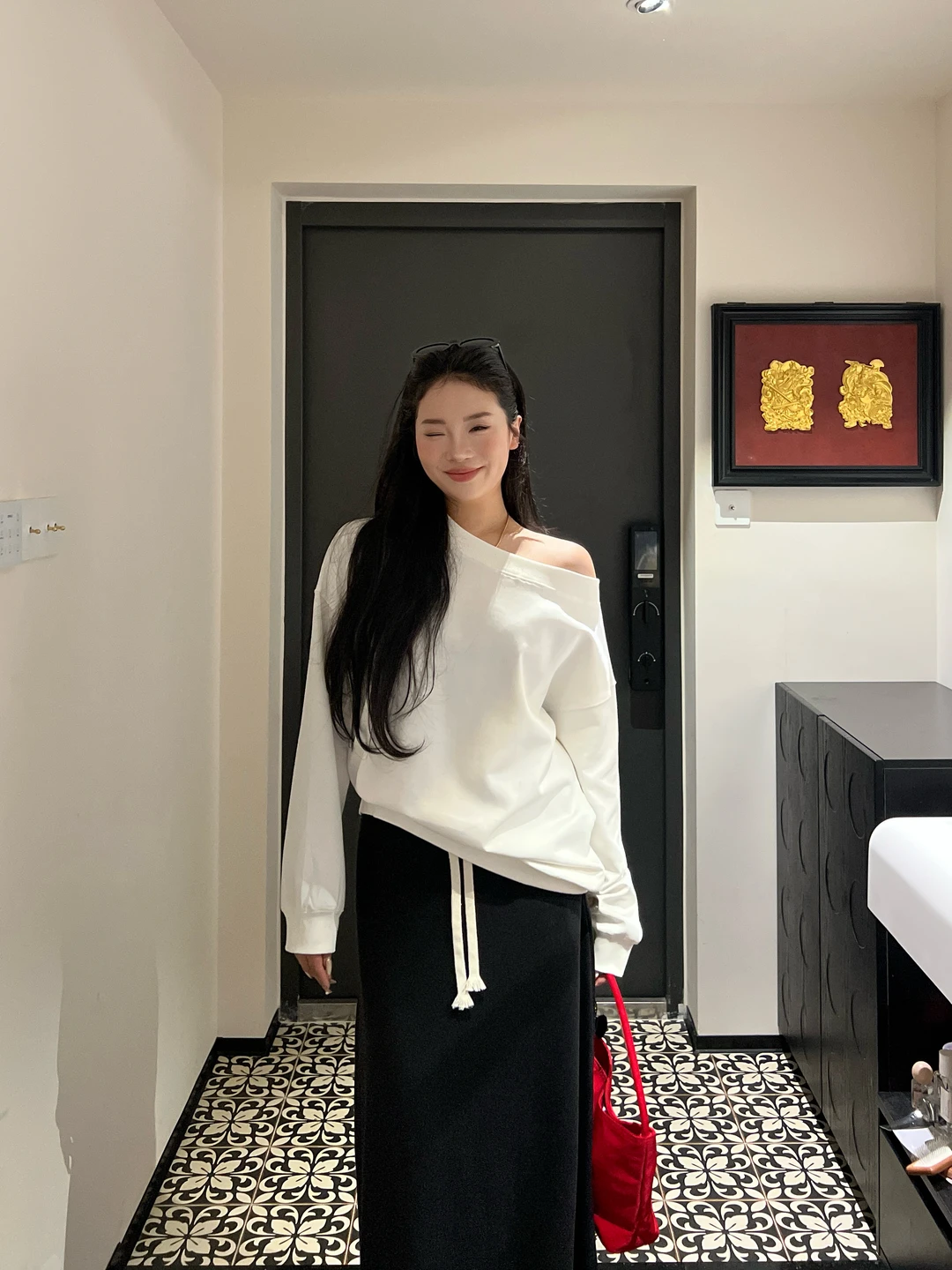 微胖穿搭 黑白穿搭 黑白配 黑与白的经典 微胖女孩穿搭 半身裙 慵懒舒适风