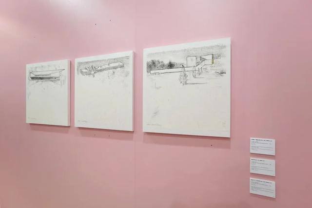 在艺术呈现上,所有建筑设计方案均以纸面水墨与丙烯为主要媒介,以统一尺寸(46x46cm)的“观念绘画”形式定格,既保留了东方书写的气质,又赋予建筑草图以强烈的当代艺术感。