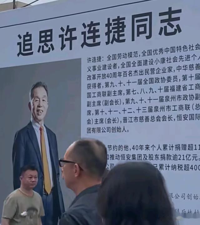 不过,许连捷生前在商界的地位瞩目,被誉为是“晋江教父”,因此追思会现场政商云集,就连晋江市长王明元、以及泉州市委书记张毅恭都送来了花圈,可见他的身份有多么的举重若轻。