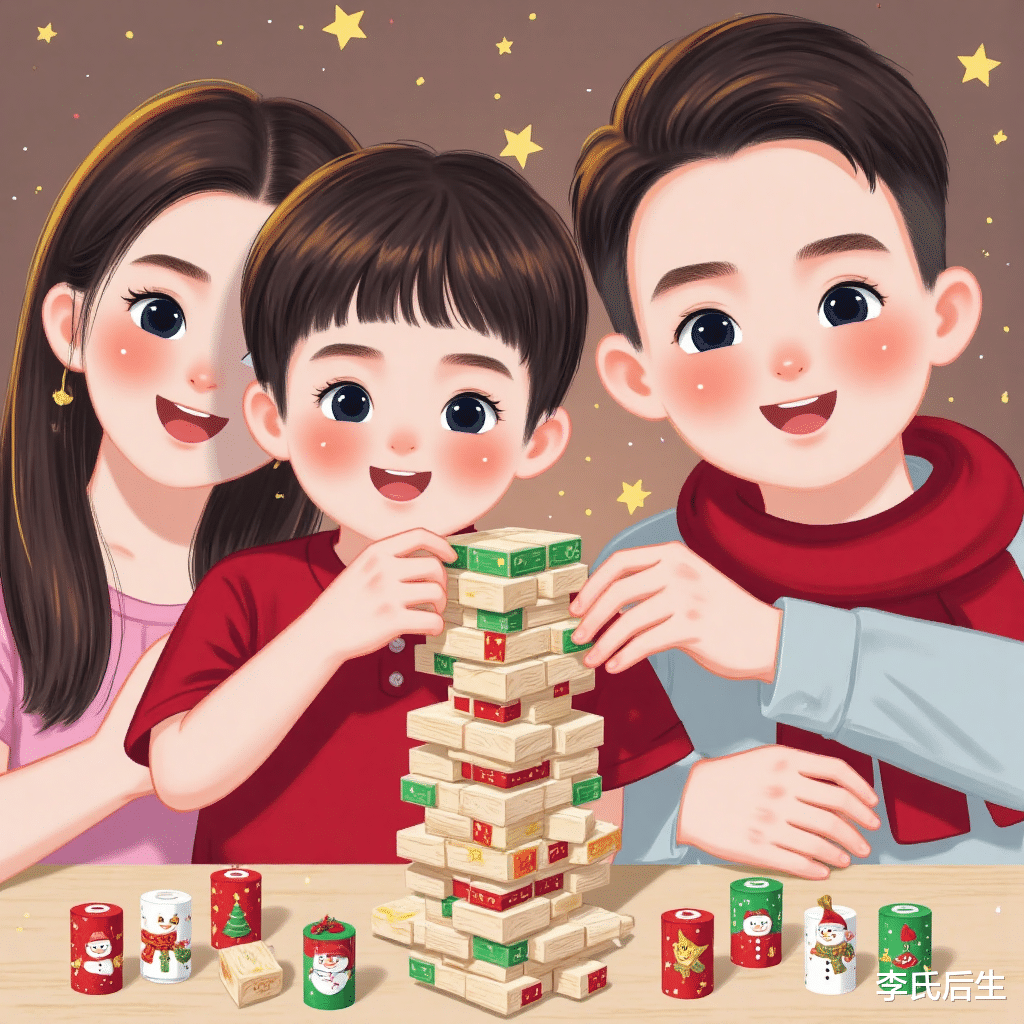 除了经典玩法,叠叠乐还能在创意的催化下,衍生出无数新奇有趣的玩法。就拿主题叠叠乐来说,当圣诞节的钟声即将敲响,整个世界都被节日的氛围所笼罩,此时,我们可以挑选带有圣诞老人、圣诞树、麋鹿等圣诞元素的叠叠乐积木,和孩子一起动手搭建一座梦幻的 “圣诞小镇”。孩子可以充分发挥自己的主观能动性,随心摆放自己喜爱的圣诞元素积木,而家长则在一旁协助调整位置,共同雕琢出一个独一无二、只属于彼此的圣诞奇妙世界。在这个充满仪式感的过程中,孩子不仅能深入了解圣诞节的文化内涵,更能尽情释放自己天马行空的想象力与创造力,亲子之间的互动,也在这一砖一瓦的搭建中,变得愈发富有意义。