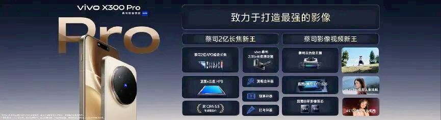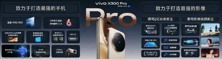 影像上,Pro 升级了 VS1+V3+ 双芯协同系统,长焦部分升级为蔡司 2 亿 APO 超级长焦,蓝图 x 三星 HPB 支持长焦增距镜,视频方面支持蔡司云台级主摄 + 双芯影像,CIPA 5.5 专业防抖,4K 120fps 10bit Log 视频,同时支持主摄、长焦和增距镜拍摄,新增冷白和负片风格。