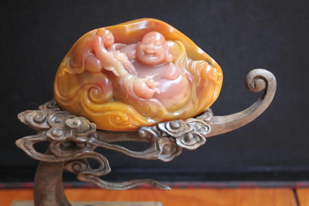 黄蜡石雕《童子戏佛》