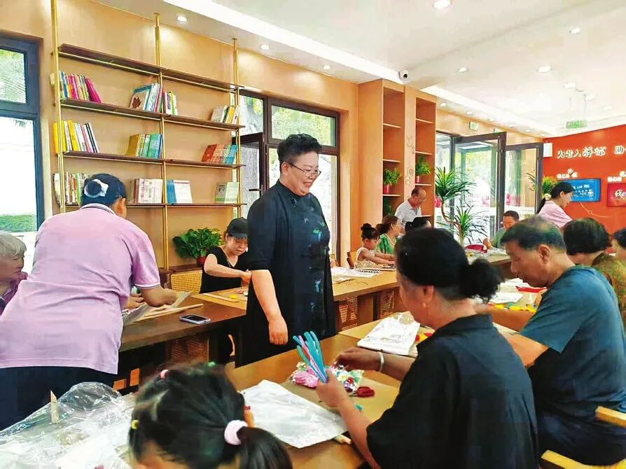 ▲老人们围坐在一起参与手工活动