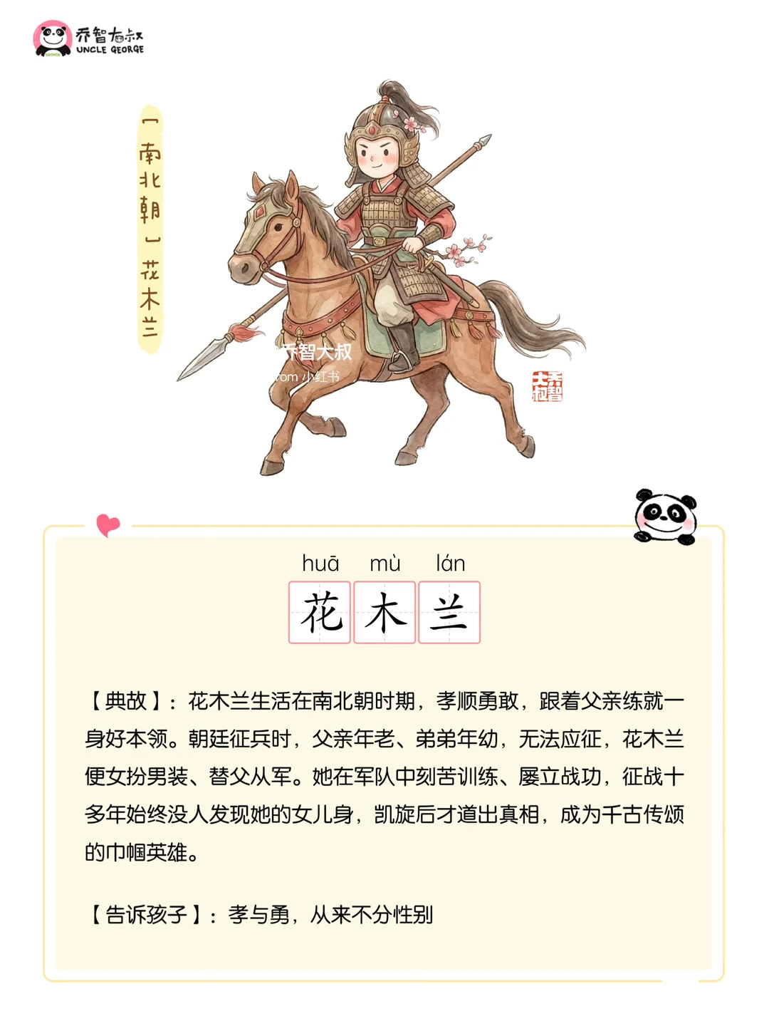 小朋友,明天就是女神节啦 你知道吗? 古代也有超多飒爽女子呢~ 这12位华夏女神,是最有力量的成长榜样✨ 从商朝女战神妇好,到替父从军的花木兰; 从续写《汉书》的班昭,到正史留名的秦良玉 每一位都有自己的光芒 典故详细好懂,寓意满满正能量 既能让孩子了解历史 也能教会孩子们勇敢、善良、有担当 女孩就该这样,不被定义,向阳生长🌱 女神节和孩子一起,解锁不一样的女神故事吧~