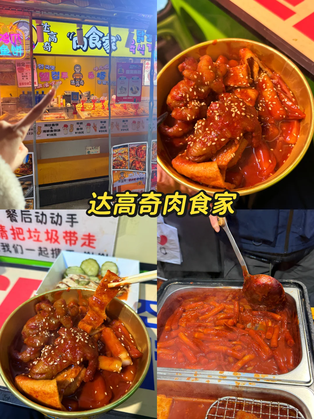 黄色门头超好找!经典煎肉饼外焦里嫩,咬开直接爆汁,搭配辣炒年糕和炸物拼盘,妥妥韩剧街头同款。肉饼裹年糕吃,双层碳水快乐拉满!