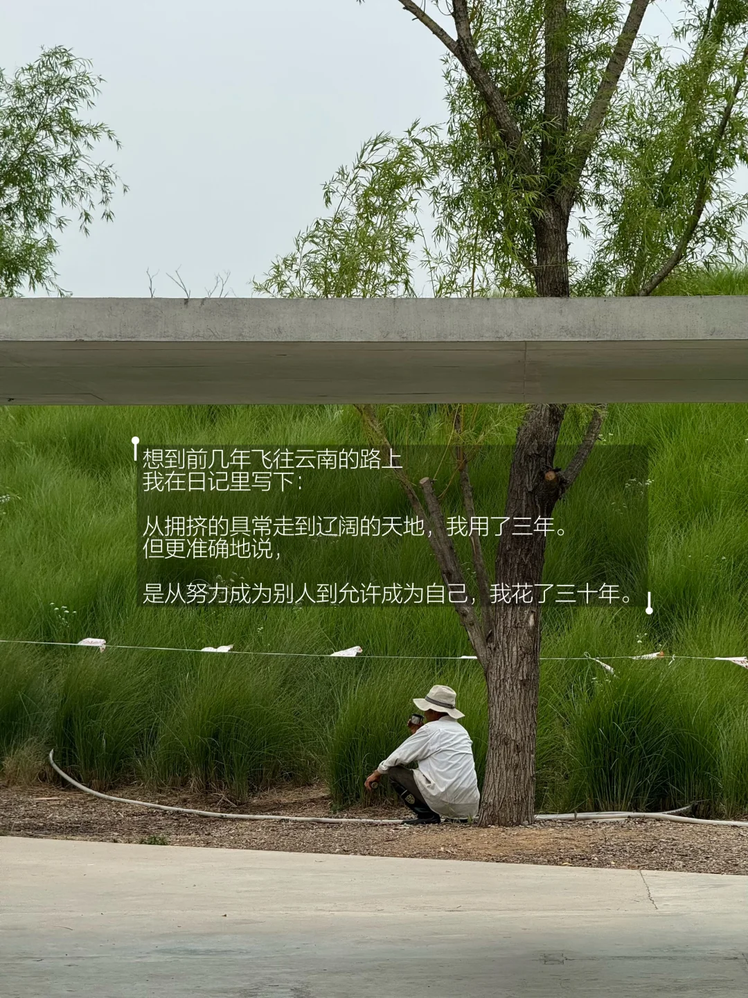 想到前几年飞往云南的路上,我在日记里写下:从拥挤的日常走到辽阔的天地,我用了三年。但更准确地说,是从努力成为别人到允许成为自己,我花了三十年。