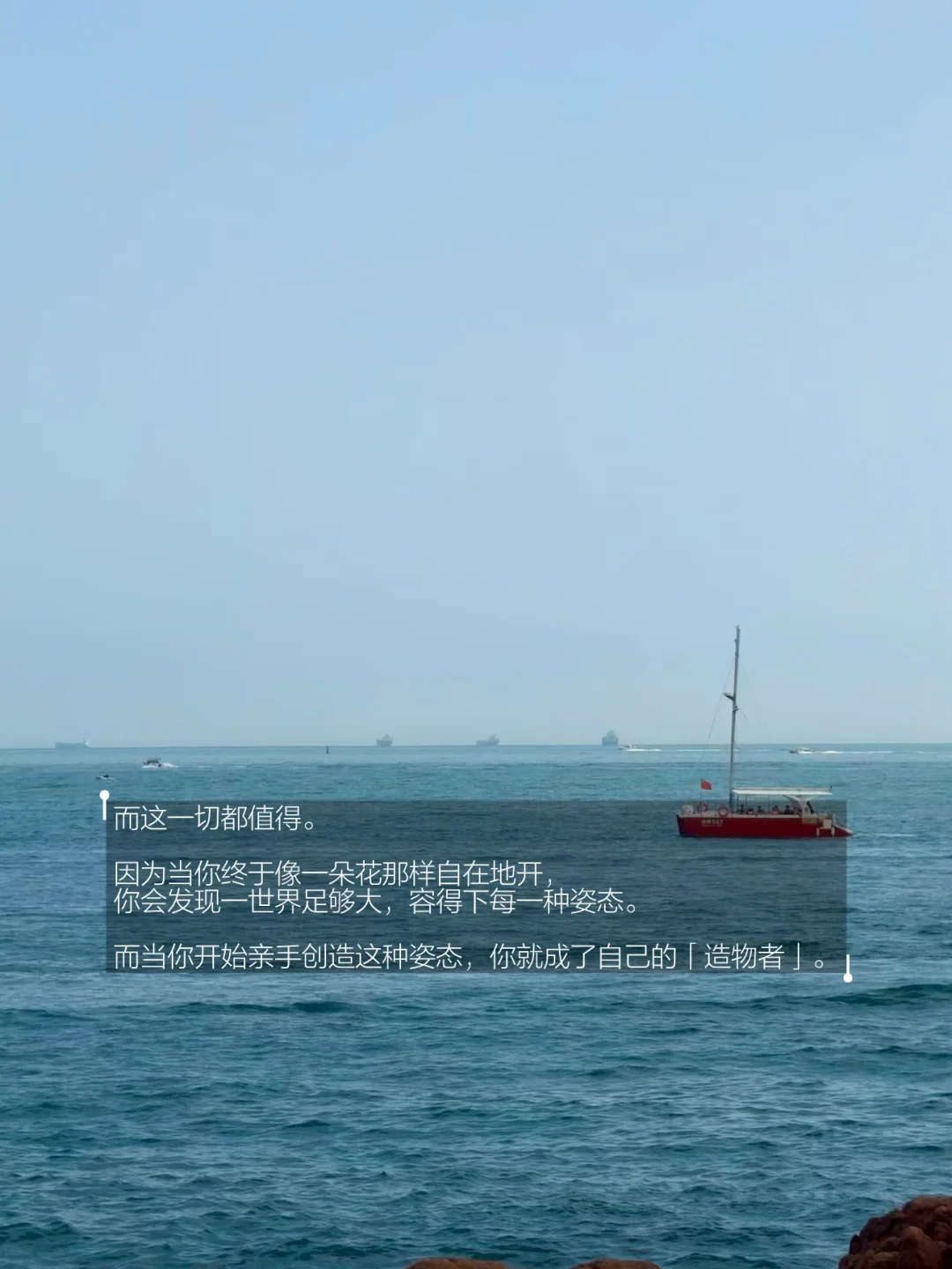 因为当你终于像一朵花那样自在地开,你会发现—世界足够大,容得下每一种姿态。而当你开始亲手创造这种姿态,你就成了自己的「造物者」。