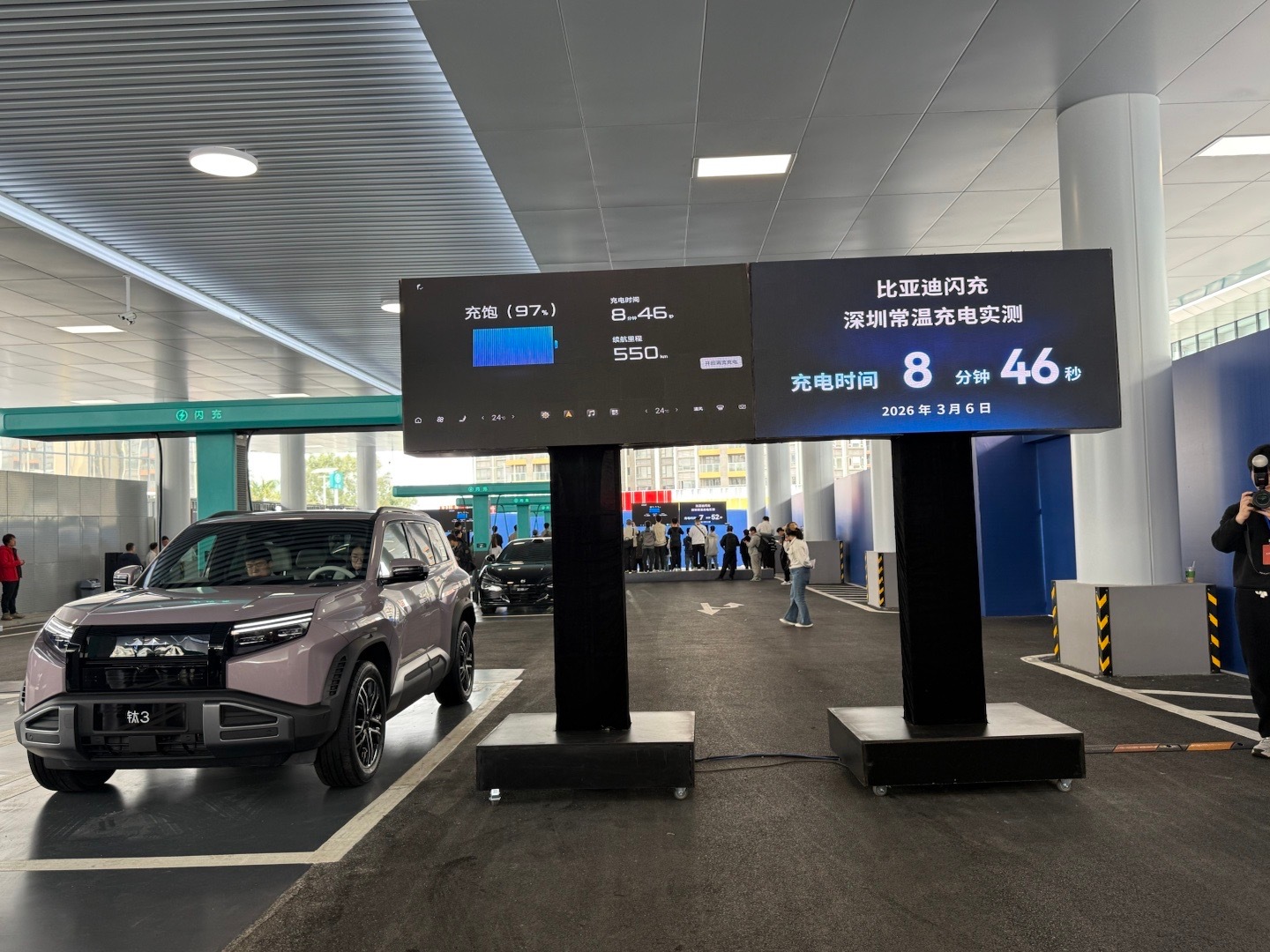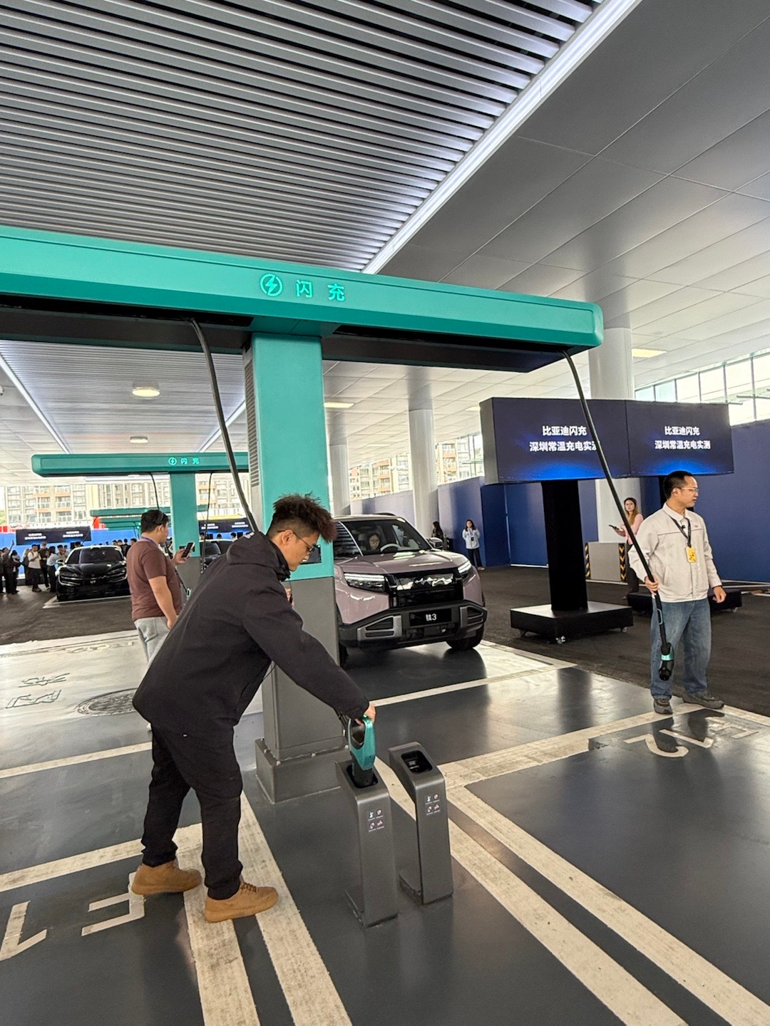 比亚迪第二代刀片电池发布会后,去参观了比亚迪闪充站,工作人员现场给演示了5分钟充好,9分钟充饱,零下30多度只多3分钟的闪充奇迹!并且闪充站的设计对女性非常友好,滑轨悬吊式T型桩,干净又轻巧,硬核闪充技术树立行业新标杆,比亚迪闪充中国战略预计2026年年度建设落成20000座闪充站,让闪充遍布全中国。