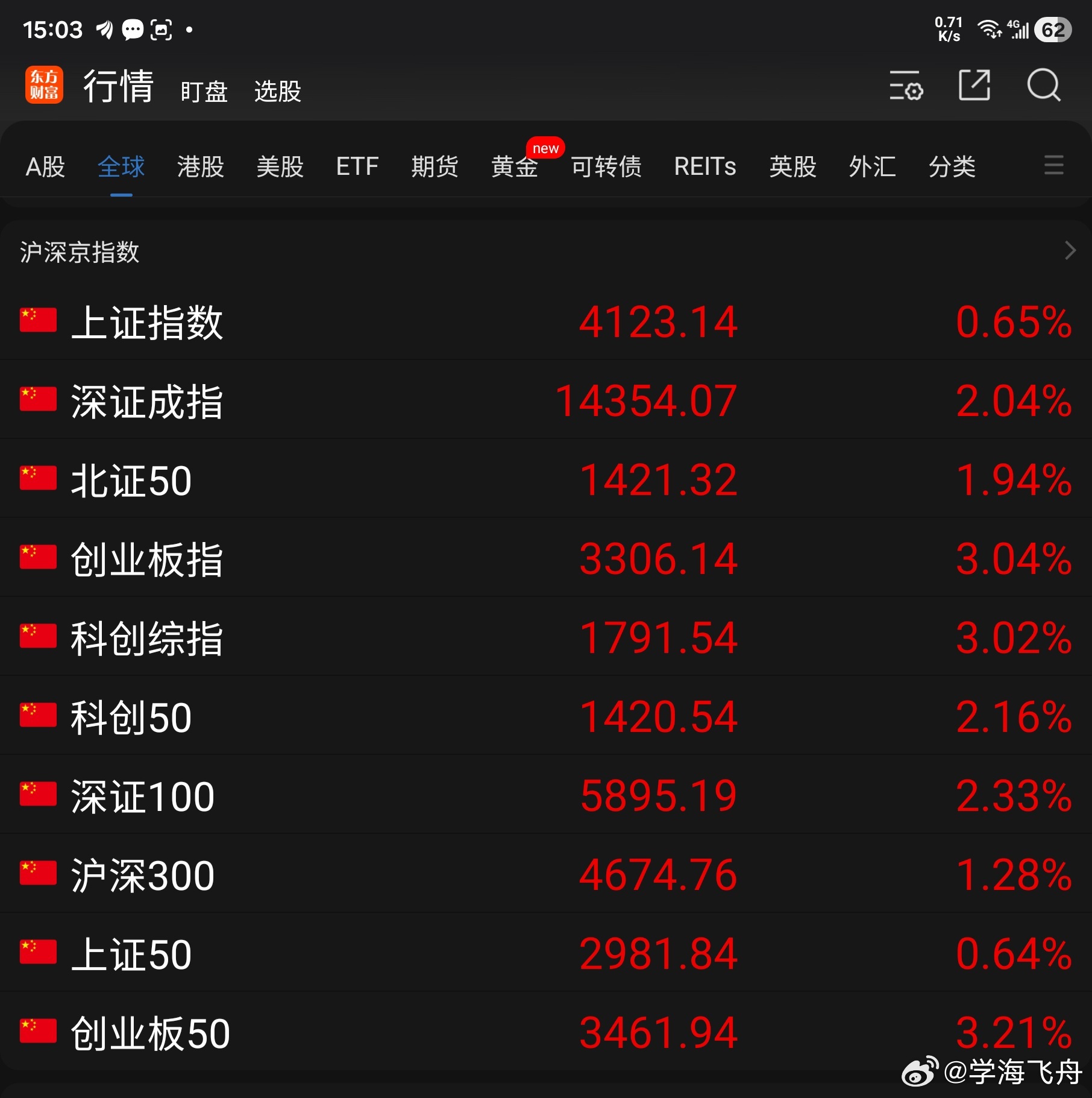 今天A 股大盘走势修复性反弹:东方财富App显示的10项指数全体上涨收红,其中有6 项指数大涨 2.04% 以上,上证指数涨 0.65%至 4123.14点,再次站上4100 点大关。个股涨多跌少,走势喜人: 沪深京三交易所中,上涨的股票有 4536 支,比昨天多 3113 支, 其中涨幅在 7% 以上的有 202 支,比昨天多 105 支; 持平的股票有 93 支,比昨天少 1 支;下跌的股票仅 850 支,比昨天少 3114 支, 其中跌幅在7%以上的有 19 支,比昨天少 17 支。三个市场全天的成交量为 24169 亿元,比昨天缩量 2539亿元,失守 2.5 万亿元关口。今天的A 股量能下降,个股上涨,可见大资金和机构抛售减弱,或许为大趋势反转节点,后市可期