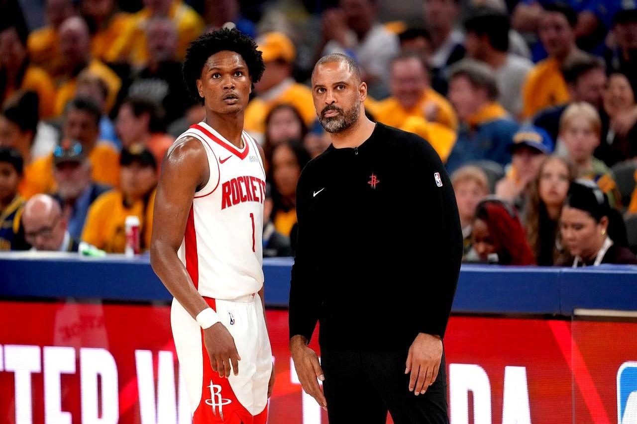 之前还吐槽阿门·汤普森只会靠身体冲篮下的,现在脸都肿了。 近5场比赛他4场得分破20,打开拓者11投12中砍26分7篮板7助攻,直接带飞球队赢球。 打勇士扛了44分钟加时,拿18分10篮板5助攻,就算球队输马刺那场,他也拿23分,和杜兰特并列队内得分王。 之前他三分基本是摆设,现在时不时能投进,也不再闷头瞎冲,会读防守、给申京和杜兰特传机会球,明显是学会动脑子打球了。 本赛季他场均17.6分7.7篮板5.3助攻,投篮命中率超过50%,从纯莽夫型后卫往全能核心转的进度条,已经走了一大半。 西部乱战里火箭还能咬着排名,他的涨球绝对是关键助力,真要是把三分练稳了,未来上限高到不敢想。