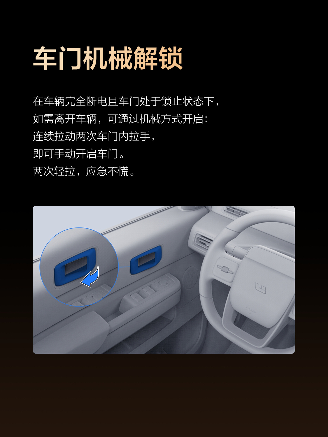 下面就是重点了,车辆完全断电且车门锁止状态下,需要离开车辆,可以通过连续拉动两次车门拉手,就能手动机械开启。再有就是激活动态驻车制动,也能应对突发紧急情况。建议理想车主可以收藏起来,很实用理想L9理想i8