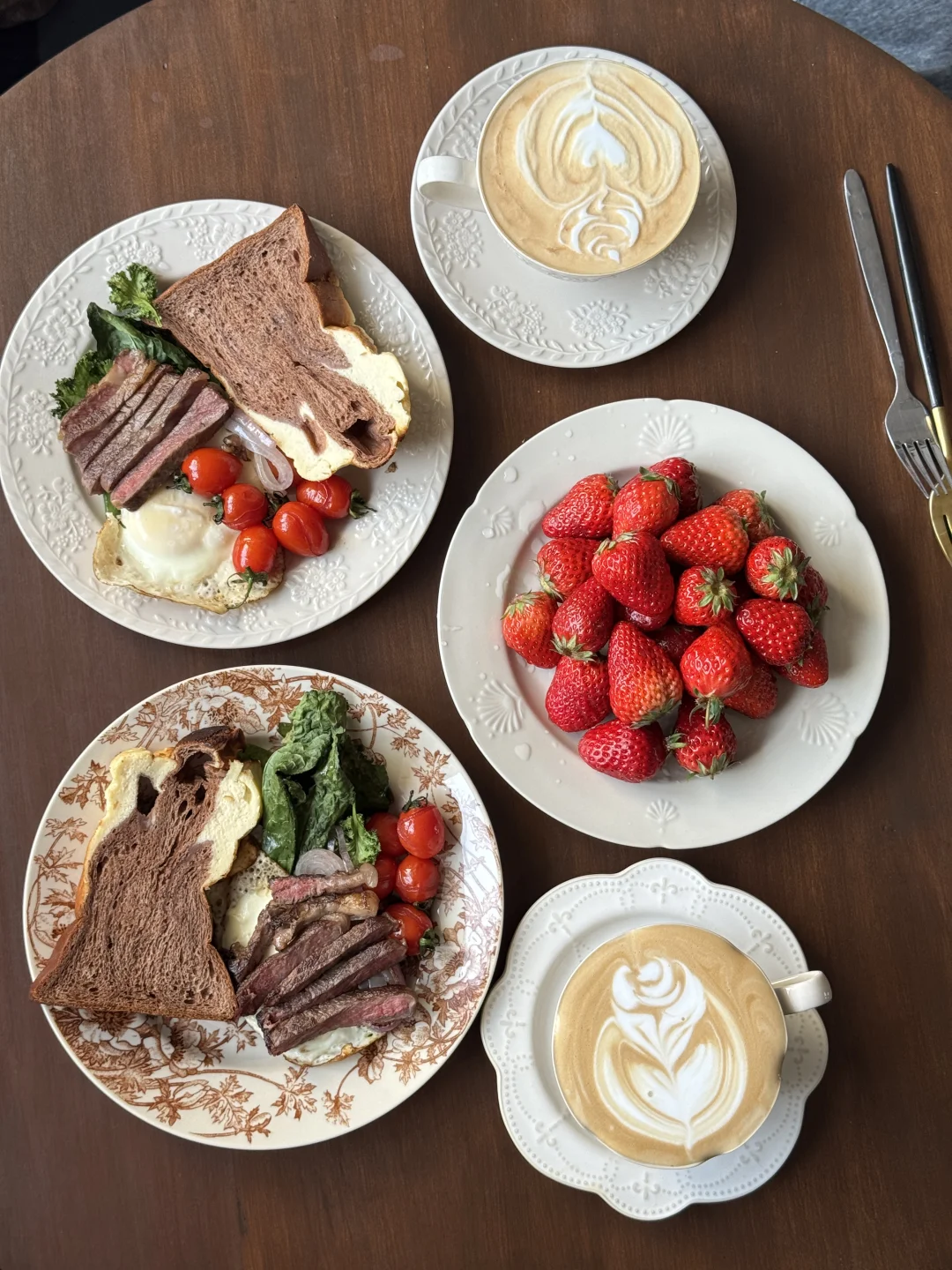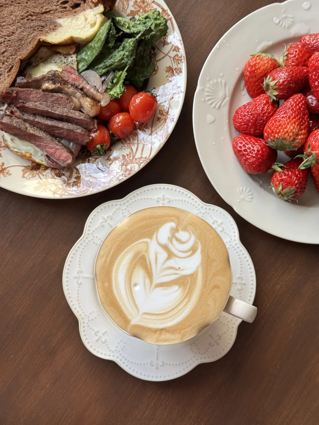 早安呀~今日八点半的早餐 第一次买菲力牛排,还挺嫩的~ 羽衣甘蓝今天烤得脆脆的特别香 像在吃薯片[满月R] 还有这个季节的小番茄味道特别浓郁~爱吃! 咖啡拉花依旧稳定的每日盲盒[呃R]