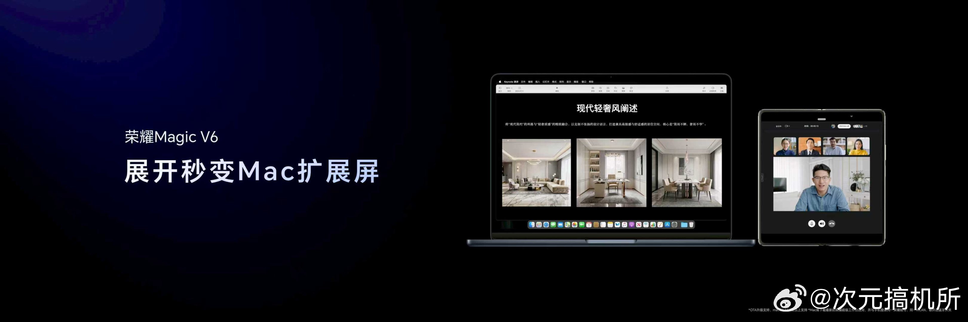 荣耀Magic V6 是Mac的折叠屏好搭子。通过行业首发的Mac一碰即传,并支持苹果办公三件套的编辑,展开秒变Mac扩展屏,还能一键登录iCloud查看相册。此外,还支持AirPods原生级体验、Apple Watch信息共享,此外 荣耀MagicV6一键共享热点给iPhone,无缝衔接苹果全家桶,跨生态连接不卡顿。