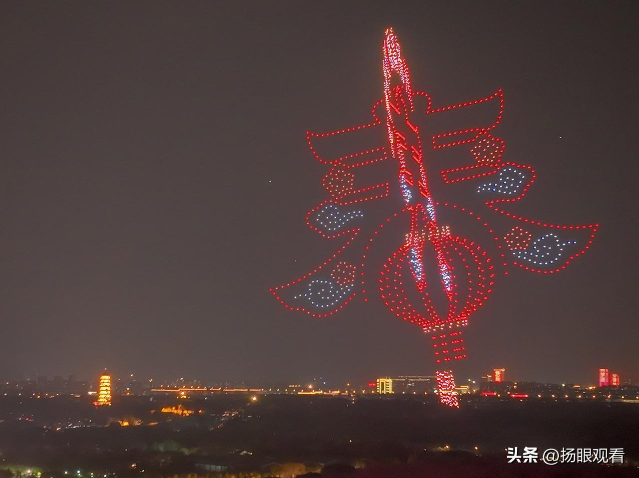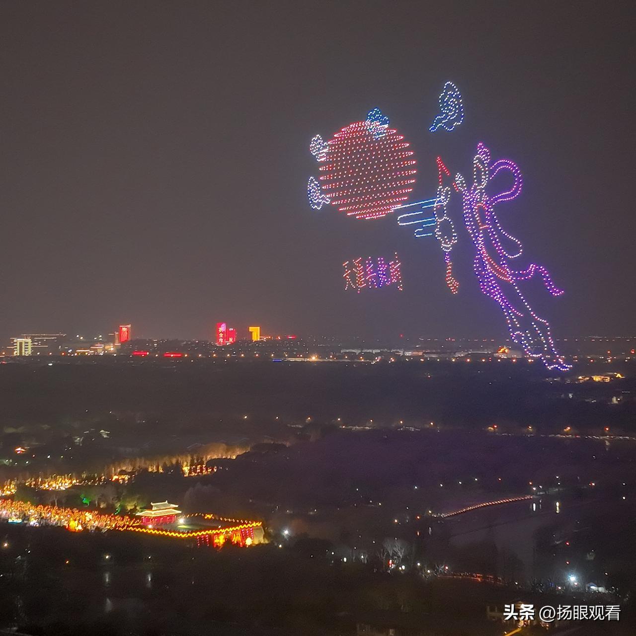 扬州宋夹城的元宵节无人机灯光秀真的美到失语! 2026架无人机点亮夜空,五亭
