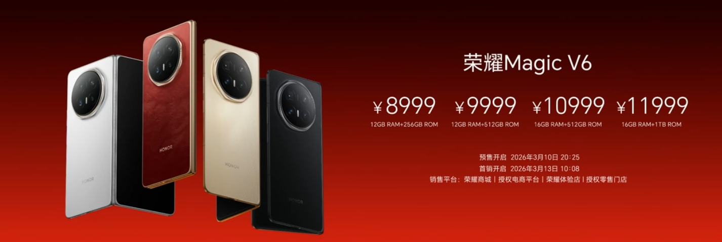 荣耀Magic V6的价格来了,起售8999元起,这次新机的实力还是相当全面的。