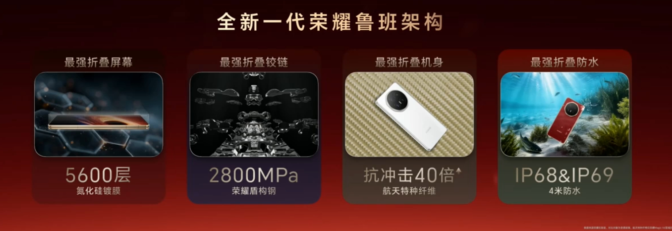 首先是其搭载的至臻黑钻屏,在发布会直播中,也对它的屏幕进行了“打磨”,结果是完好无损,并且还通过了SGS无感知折痕认证,相较上一代折痕改善44%。机身可靠性上,新机搭载新一代荣耀盾构钢,拥有航空级锻造工艺铸就机身。相当于2800MPa强度远超汽车A柱,主打坚韧稳固。
