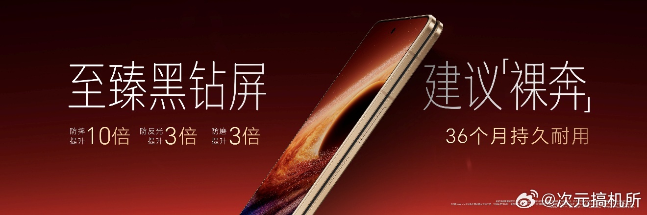 在外屏方面,通过将与跑车轴承同款的高性能材料——“氮化硅”引入手机屏幕,并独创5600层氮化硅堆叠技术和芯片级的高精工艺,把叠层平整度控制在了2nm,实现10倍防摔、3倍防反光、3倍防磨,突破“耐磨、抗刮和低反”的屏幕不可能三角。