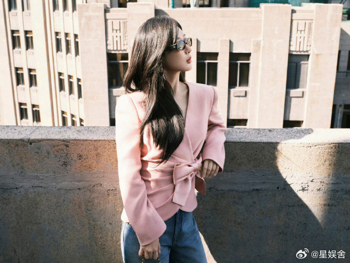 杨紫罗马时装周出图杨紫收腰粉西装好有星味啊杨紫,罗马时装周出发图🈶