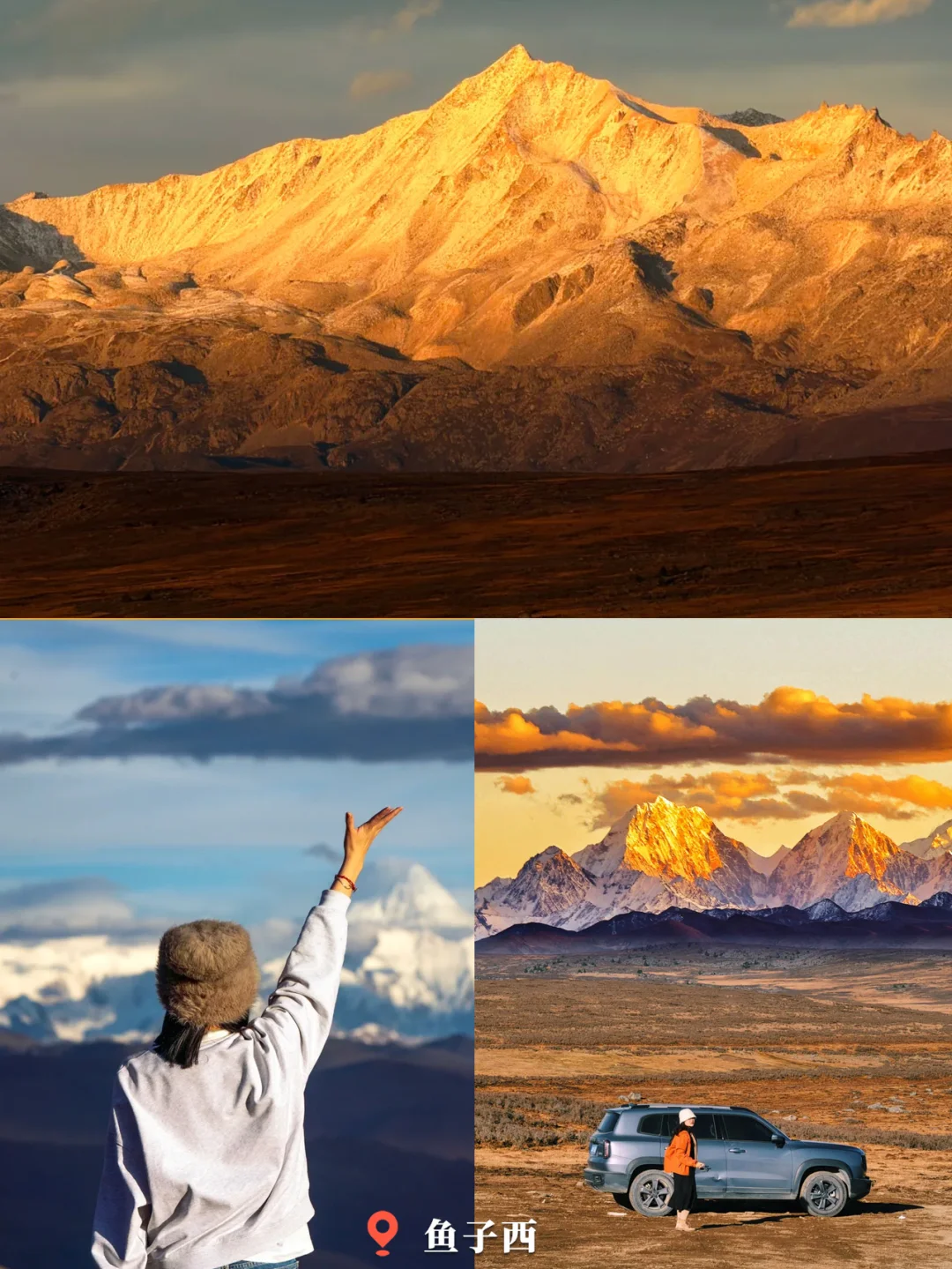 贡嘎和雅拉被染成金红色的瞬间,值得所有翻山越岭的奔赴✨
