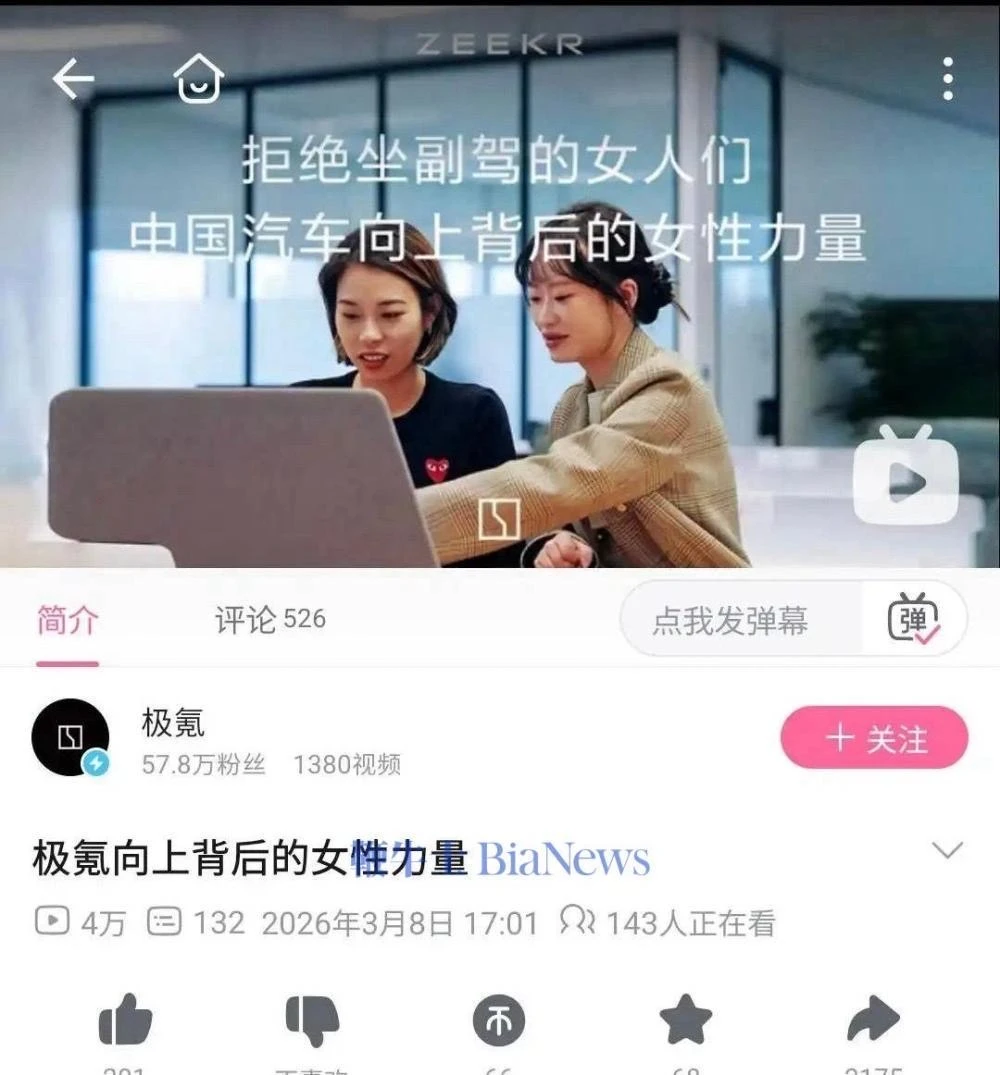 据了解,极氪汽车为2026年三八妇女节制作的营销视频,因内容引发舆论争议,其争议焦点在于视频中反复强调性别差异的表述被批“加深刻板印象”。