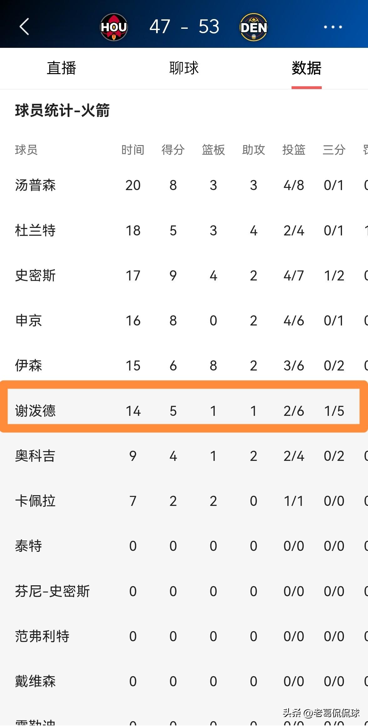 火箭神射手谢波德竟然无法命中三分球!在今天进行的火箭和掘金的强强对话中,目前双方的上半场比赛已经结束,火箭以47:53落后对手6分。值得一提的是,在前两节比赛中,谢波德在三分线外手感冰凉,他在替补出战的14分钟里,投篮6中2,其中三分球5中1非常低效的得到5分,还有3次失误,他的场上正负值为-2。 作为当今联盟最炙手可热的神射手,谢波德竟然投不进三分球,这样的情况真是太不正常了。