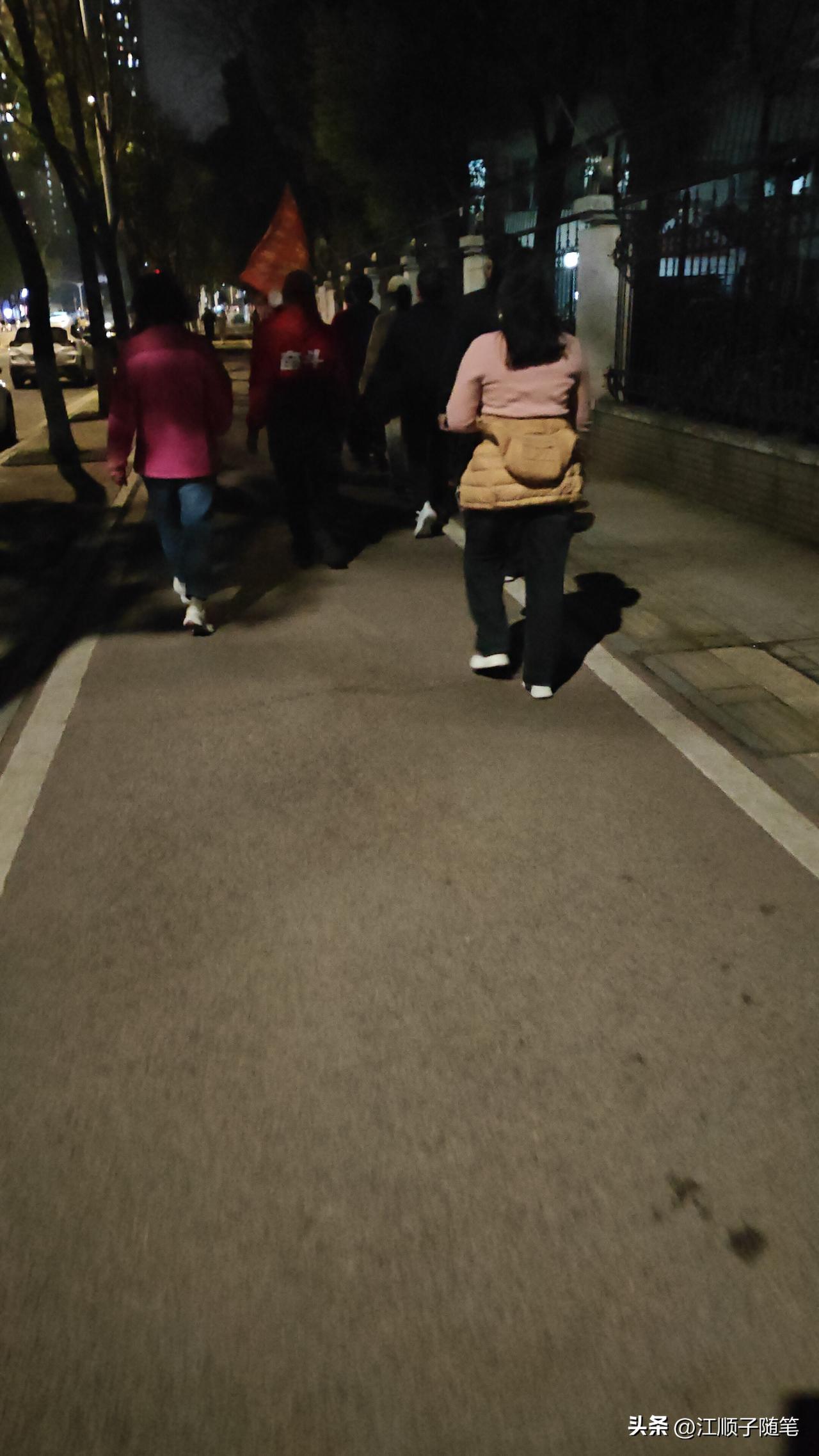 摸准了他们的点:每晚七点半,3号楼前准时出发。我每天掐着点蹲守,队伍一动,我就悄咪咪跟在最后面,当个不说话的隐形队员。