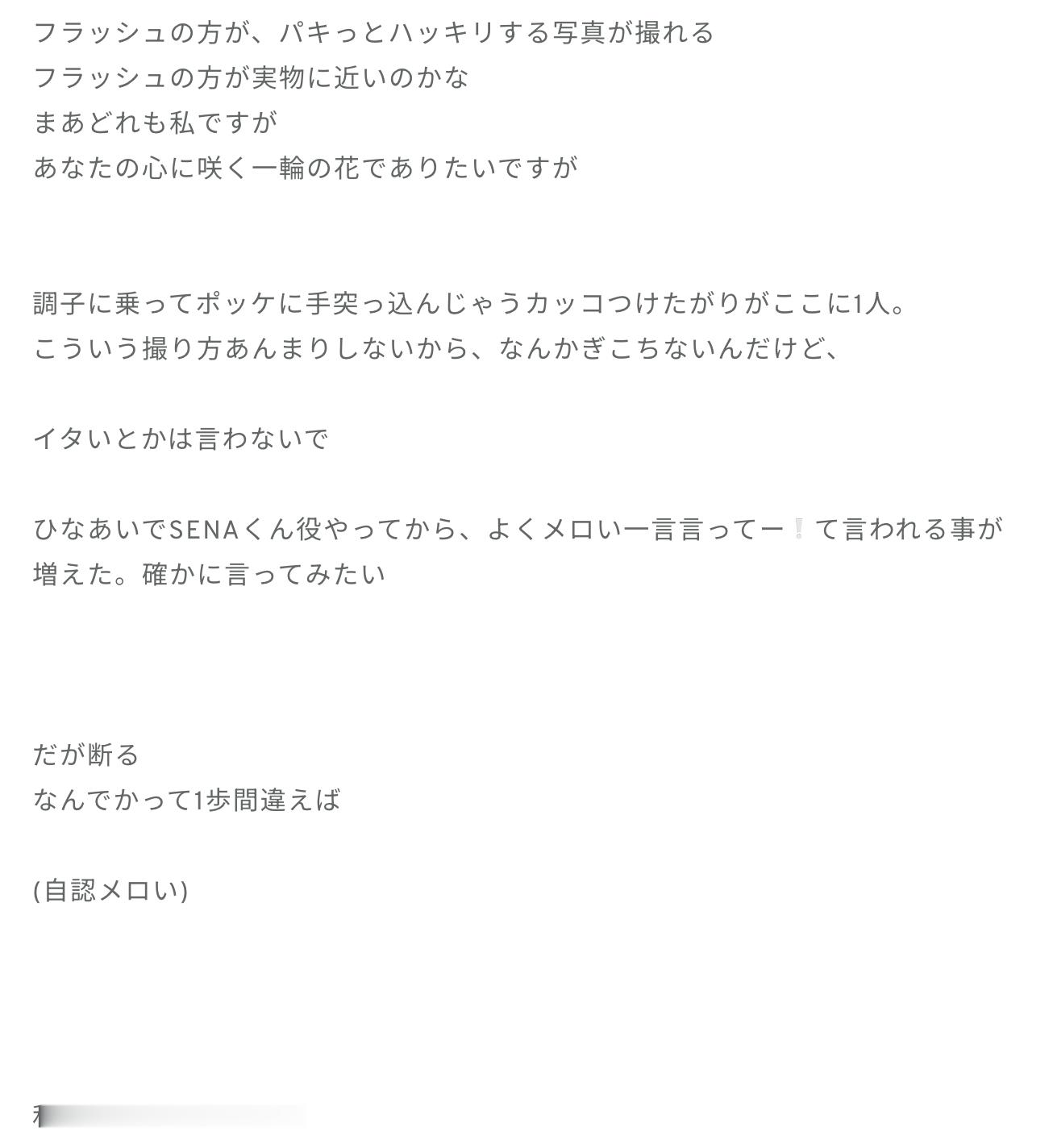 松尾桜「🔍 メロいって何 最近、生きてて色んな場所で、メロい!みたいな言葉を聞くんですけど、正直メロいって言ったもん勝ちなきがしてきて、どんなにメロいと程遠い雰囲気でも、脳内に「メロい」を植え付けちゃえば、その人の「メロい」部分を勝手に探しちゃって、なんだかんだ一瞬でもメロく見えてくるのではとか思ってます」