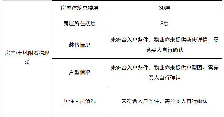 目前公开信息极少,到底是毛坯还是老旧装修?有无违建?是否有人占用?这些都需要买受人自行核实。