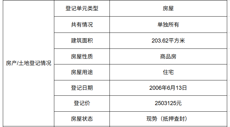 根据法拍平台竞买公告内容,该法拍房源建筑面积未203.63平米,原业主在2006年购入,登记价格约为250万元,尽管对比高峰期房价回落不少,但与20年相比,房价依然涨了7.5倍。