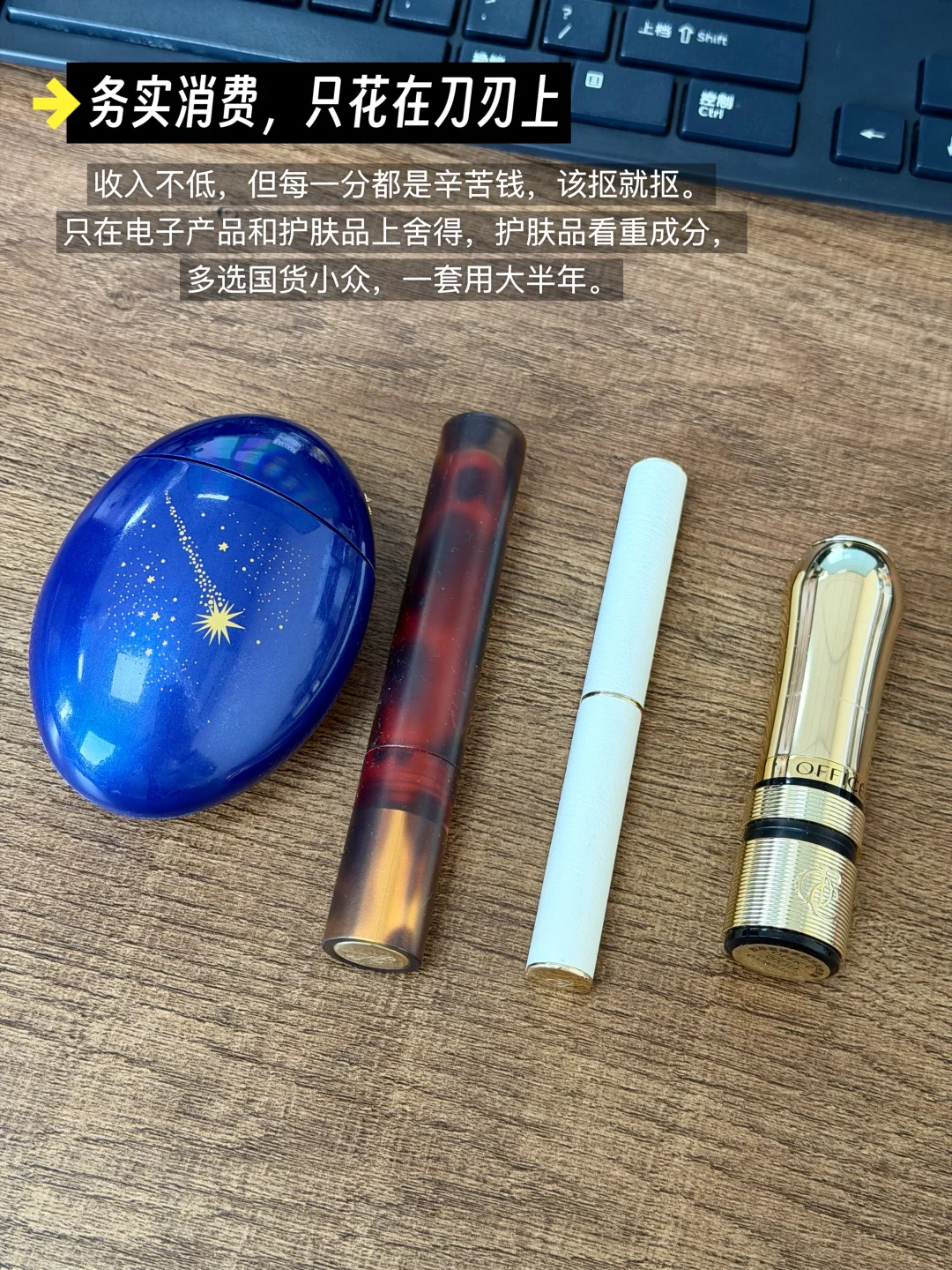 收入不低,但每一分都是辛苦钱,该抠就抠。只在电子产品和护肤品上舍得,护肤品看重成分,多选国货小众,一套用大半年。