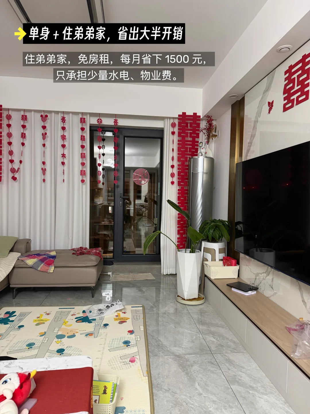 ⚡️住弟弟家,免房租,每月省下 1500 元,只承担少量水电、物业费。