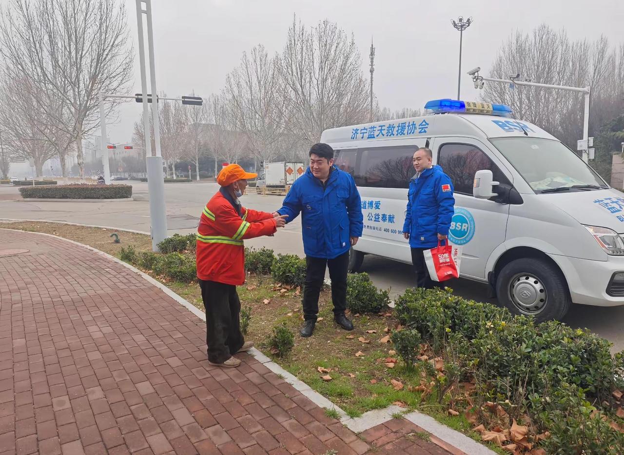 走丢人员本人送来锦旗表示对济宁蓝天救援队感谢,蓝天救援(救)在身边。
