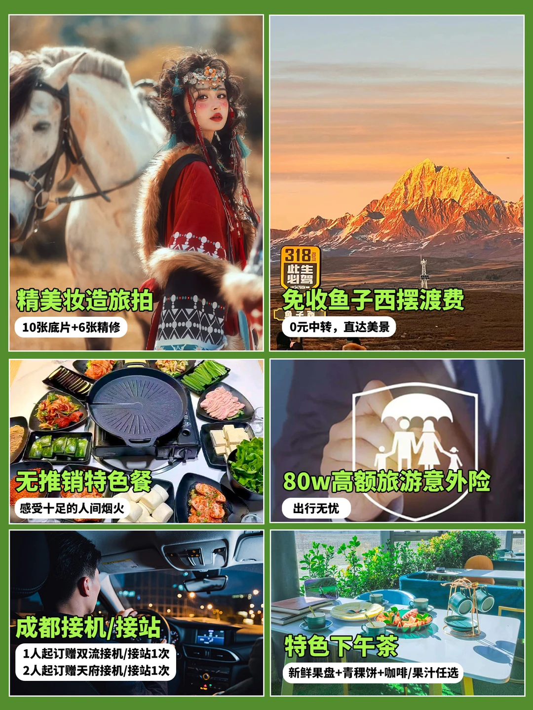 🚐 川西漫游记,去做旷野上的风🍃 📍打卡川西小众秘境,体验感拉满的纯玩之旅! 🌟 行程亮点抢先看 ✅ 纯玩🈚购物,拒绝隐形消费,全程无忧畅游 ✅ 小团出行,舒适自由,告别大巴团拥挤 ✅ 塔公草原妆造旅拍(10张底片+6张精修) ✅ 0元中转,免收鱼子西摆渡费,直达美景 ✅ 氧气瓶+旅游三宝+成都接机/接站+三环内接早 ✅随车配备单反/无人机,大片直出 ✅赠送木格措景区+雅拉雪山景区大门票 ✅80w高额旅游意外险,出行更安心 ✅特色藏式土火锅+篝火晚会,满足你的味蕾与视觉观感 🗺️4天3晚经典路线 Day1:成都→猫鼻梁观景台→四姑娘山·双桥沟→丹巴 Day2:丹巴→雅拉雪山景区→墨石公园→鱼子西/格底拉姆→新都桥 Day3:新都桥→塔公旅拍→姑弄村→木雅大寺→红海子→康定 Day4:康定→康定情歌景区(木格措)→成都 📸 必打卡景点推荐 ✨ 墨石公园:异域星球地貌,随手一拍就是大片 ✨ 雅拉雪山:雪山秘境,震撼心灵的纯净之地 ✨ 鱼子西:360°雪山观景台,日落时分绝美 ✨ 木格措:康定情歌发源地,高原湖泊与森林交织 ✨ 塔公草原:草原+雅拉雪山同框,旅拍绝佳地 📌 小贴士 🔸 高原地区注意防晒保暖,备好常用药品 🔸 鱼子西摆渡费全免,别被忽悠哦~ 🔸 名额有限,建议提前订 💬 快来戳我们,锁定你的川西秘境之旅吧! 川西旅游 四姑娘山 木格措 雅拉雪山 鱼子西 川西纯玩小团 川西小环线 川西小团 川西报团