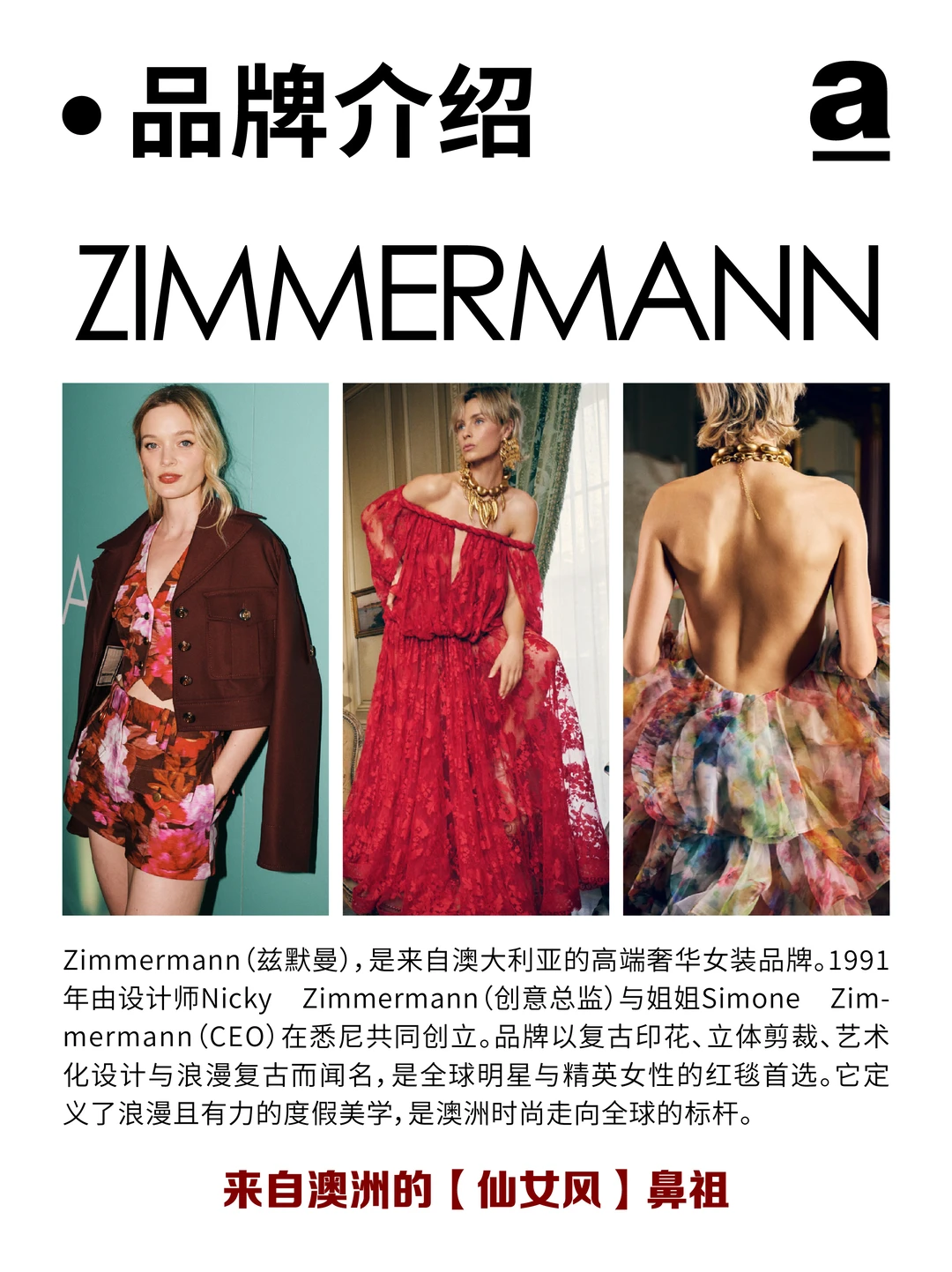 zimmermann仙女裙仙女裙鼻祖澳洲小众品牌度假裙天花板女明星同款轻奢女装小众高级感穿搭法式复古穿搭碎花连衣裙精致女人味宝藏连衣裙高级感穿搭设计师品牌每天认识一个品牌