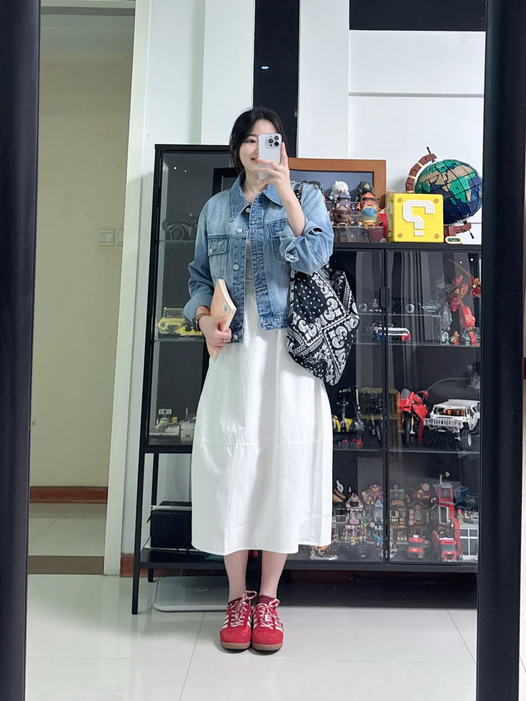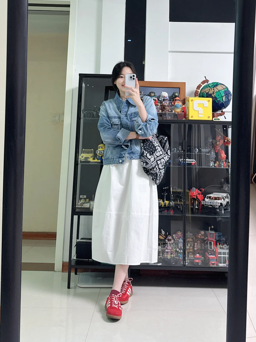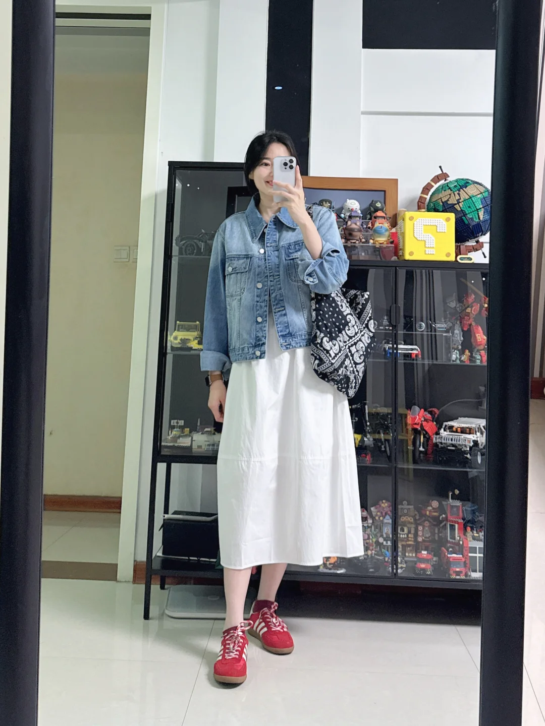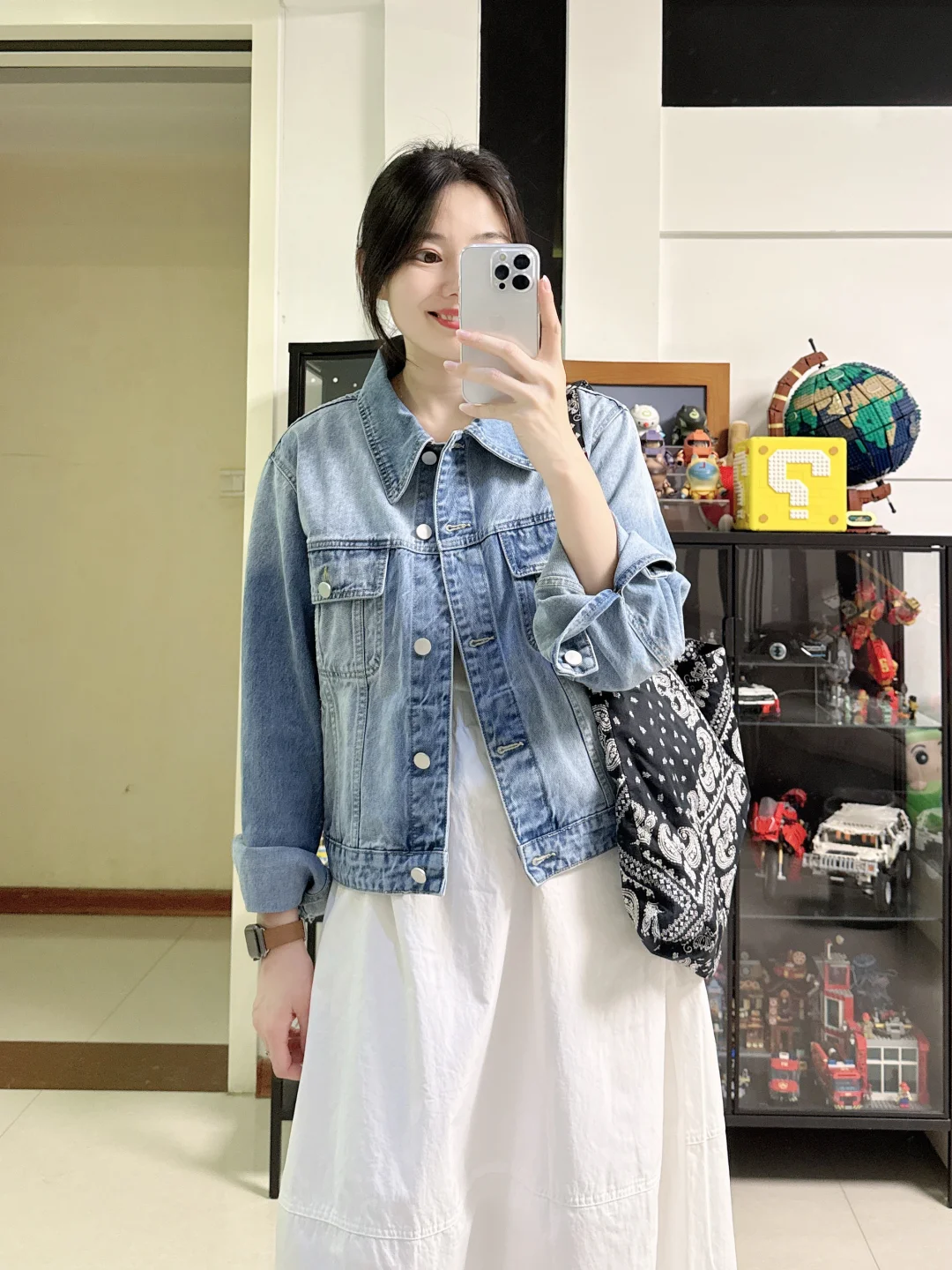 👩今日穿搭:春天怎么能少得了牛仔外套呢,越简单的款式越经典,短款搭配白色半裙,舒适减龄,日常通勤也很随性。