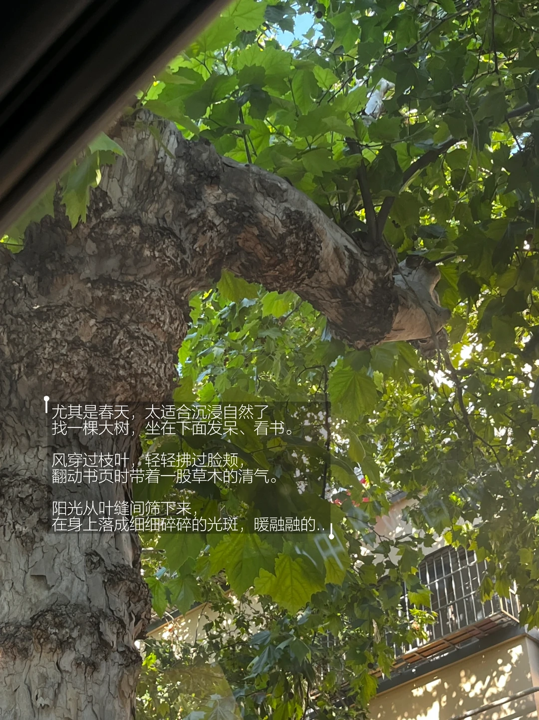 风穿过枝叶,轻轻拂过脸颊,翻动书页时带着一股草木的清气。阳光从叶缝间筛下来,在身上落成细细碎碎的光斑,暖融融的…