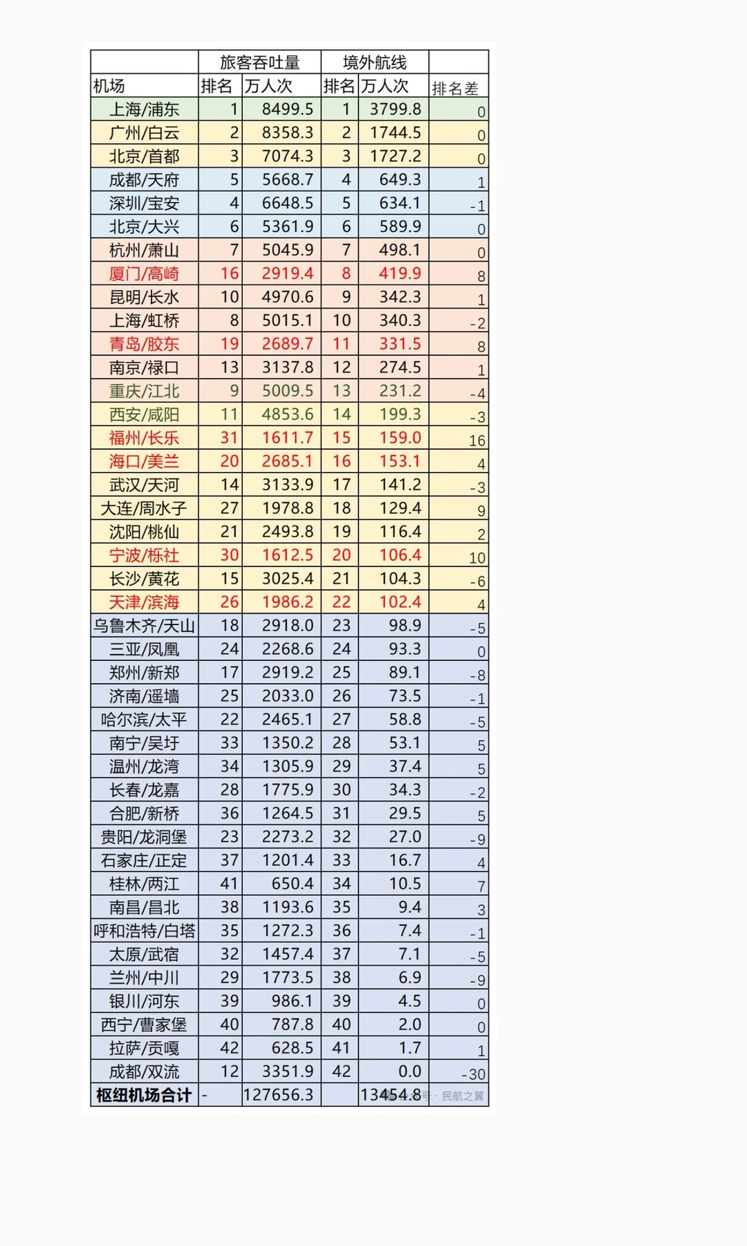 2025年,我国国际机场排行榜!