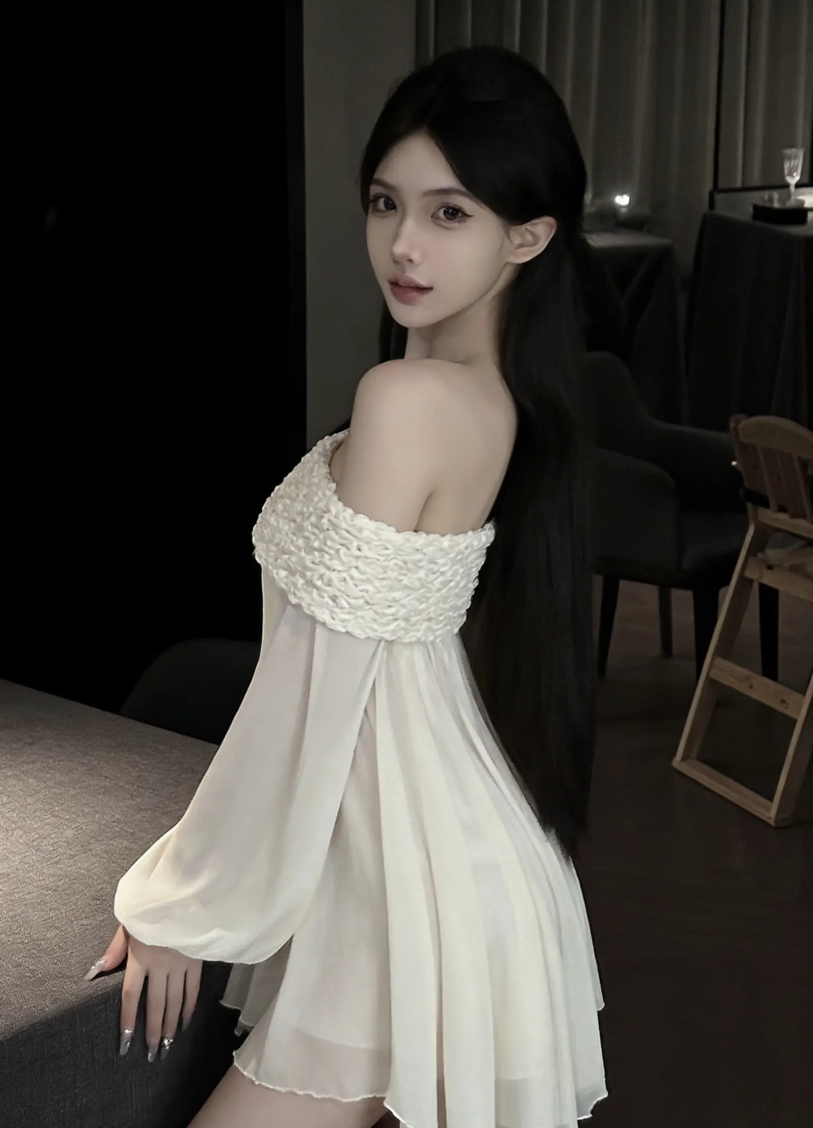 清纯 少女 温柔露肩装 穿搭 温柔的白色连衣裙