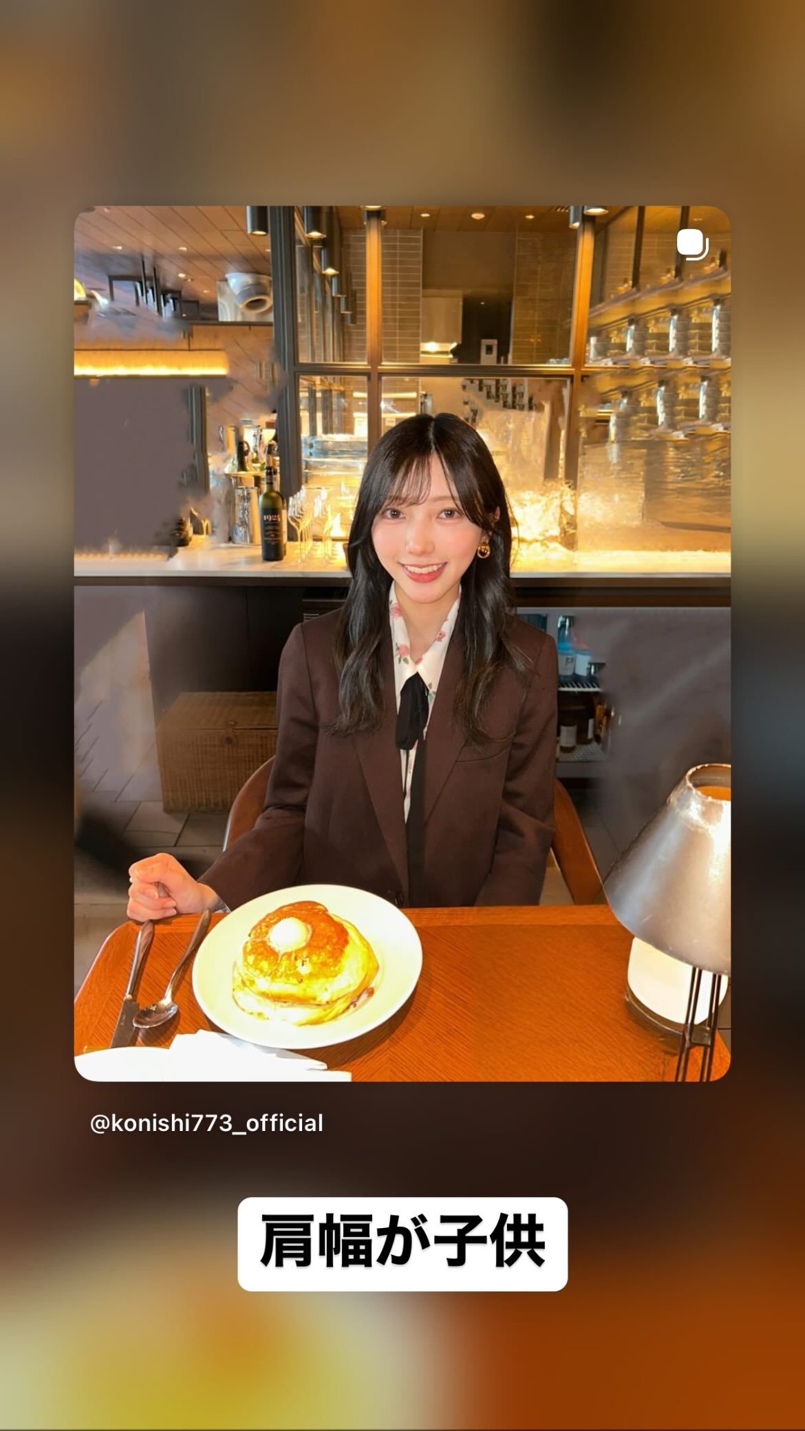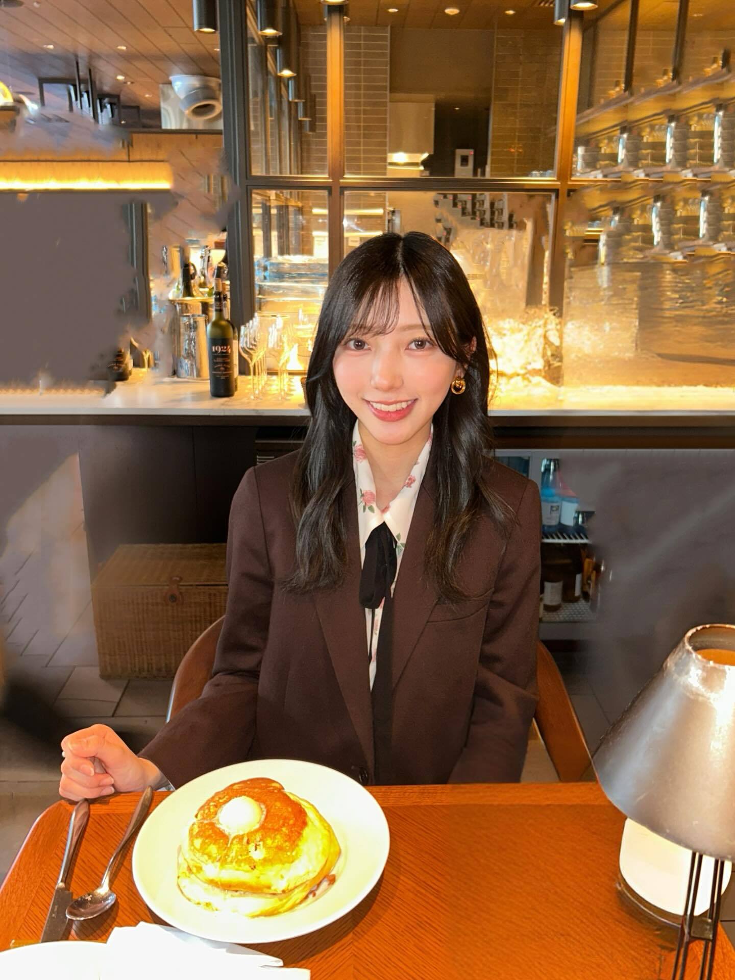 小西夏菜実🐺「パンケーキを食べた🥞最後のはみっちゃんの映りこんだ爪が黄色すぎ