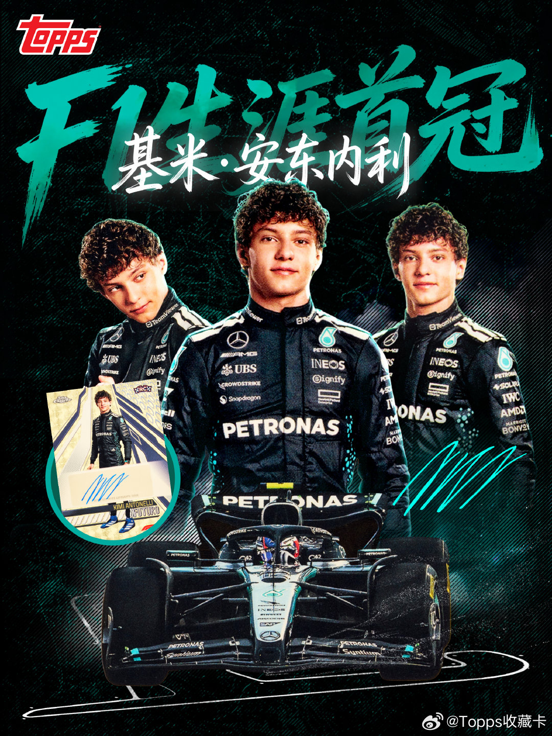 只用一年,他从新秀变成冠军🏆去年,他还是围场里最年轻的面孔。第一次坐进梅赛德斯座舱,第一次驶过发车格,第一次站上领奖台——那些被Topps Now定格的瞬间,记录着一个少年的起步
